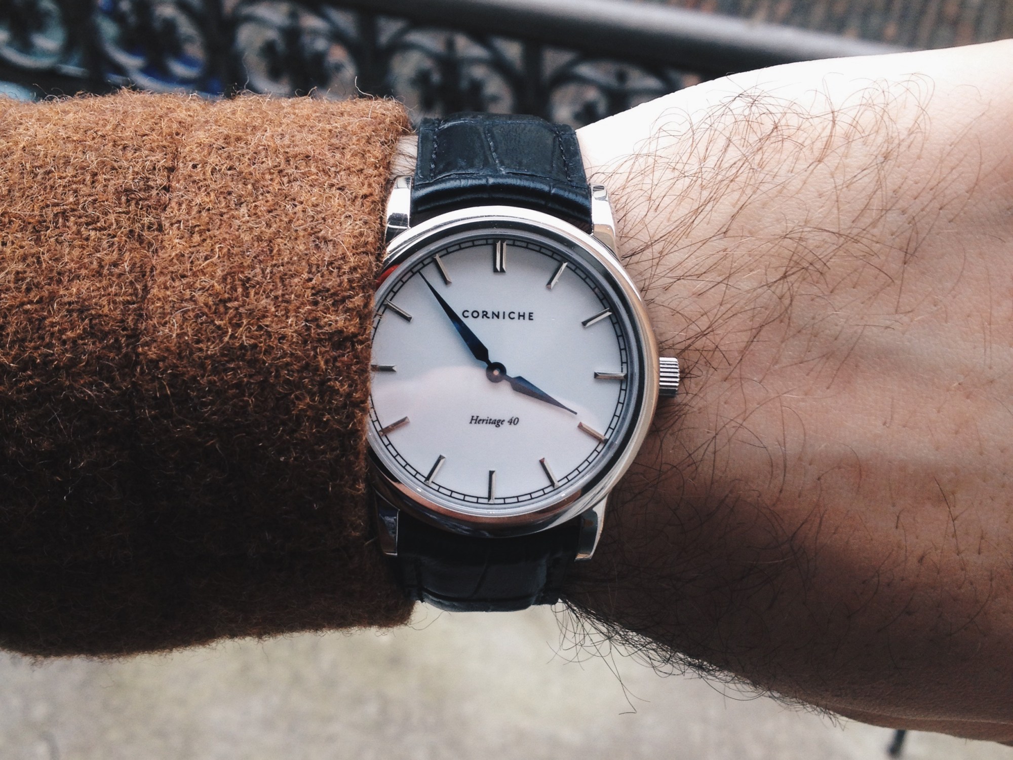 So the watch that arrived today is Corniche Heritage 40. Corniche Watches is a company based out of Sweden that has produced their first watch model, the Heritage 40. Corniche Watches view their watch creations as something intimate to the wearer as described on the website: “We believe that watches are something more than a means of telling the time. It’s a unique and personal object that holds valuable memories. The purchase of a watch is often linked to a personal milestone – the first promotion, a marriage or the birth of a child. It’s also the perfect gift for someone you love.”
