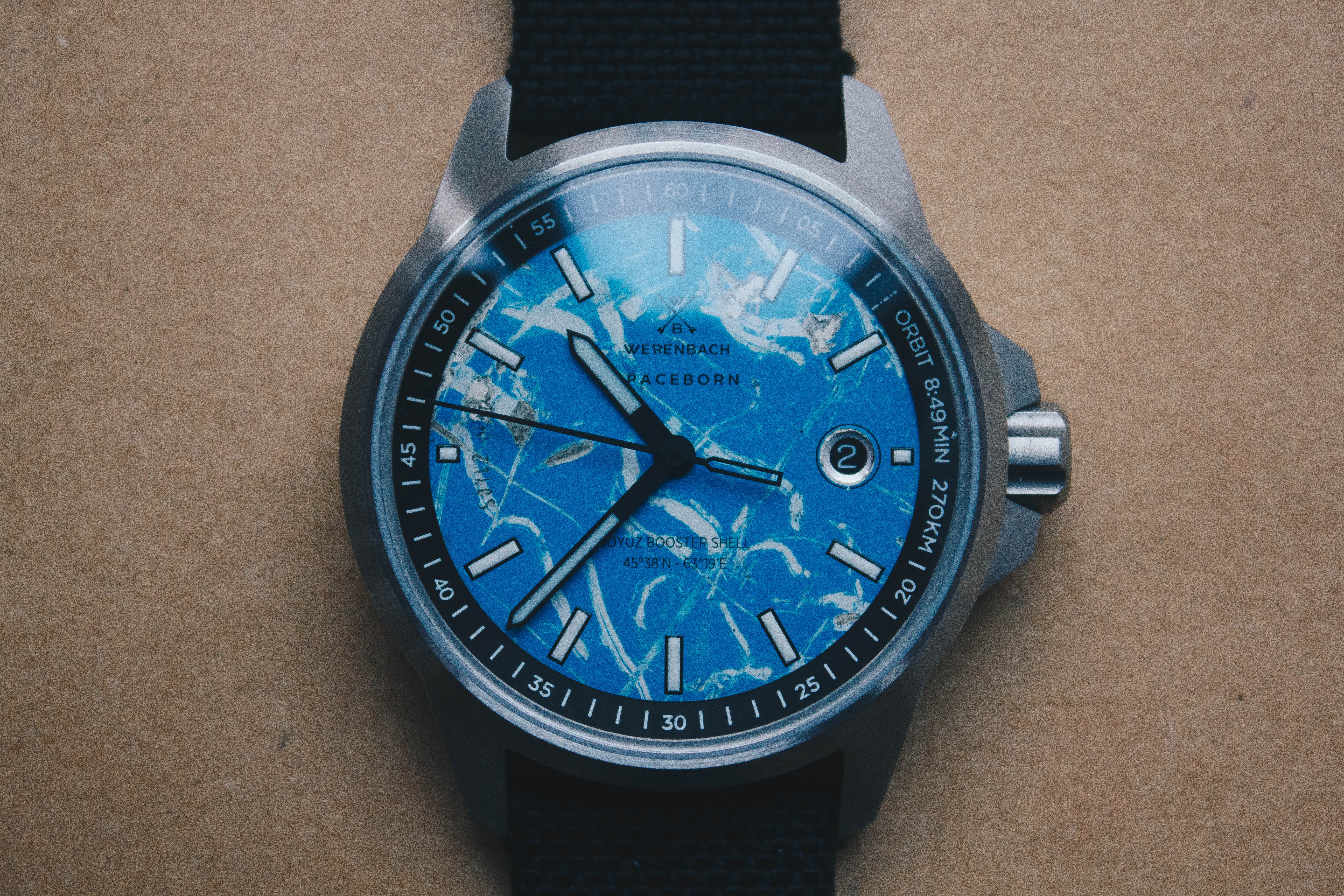Werenbach Leonov collection B.T.O. Blue (Review) Dial made from Soyuz rocket shell