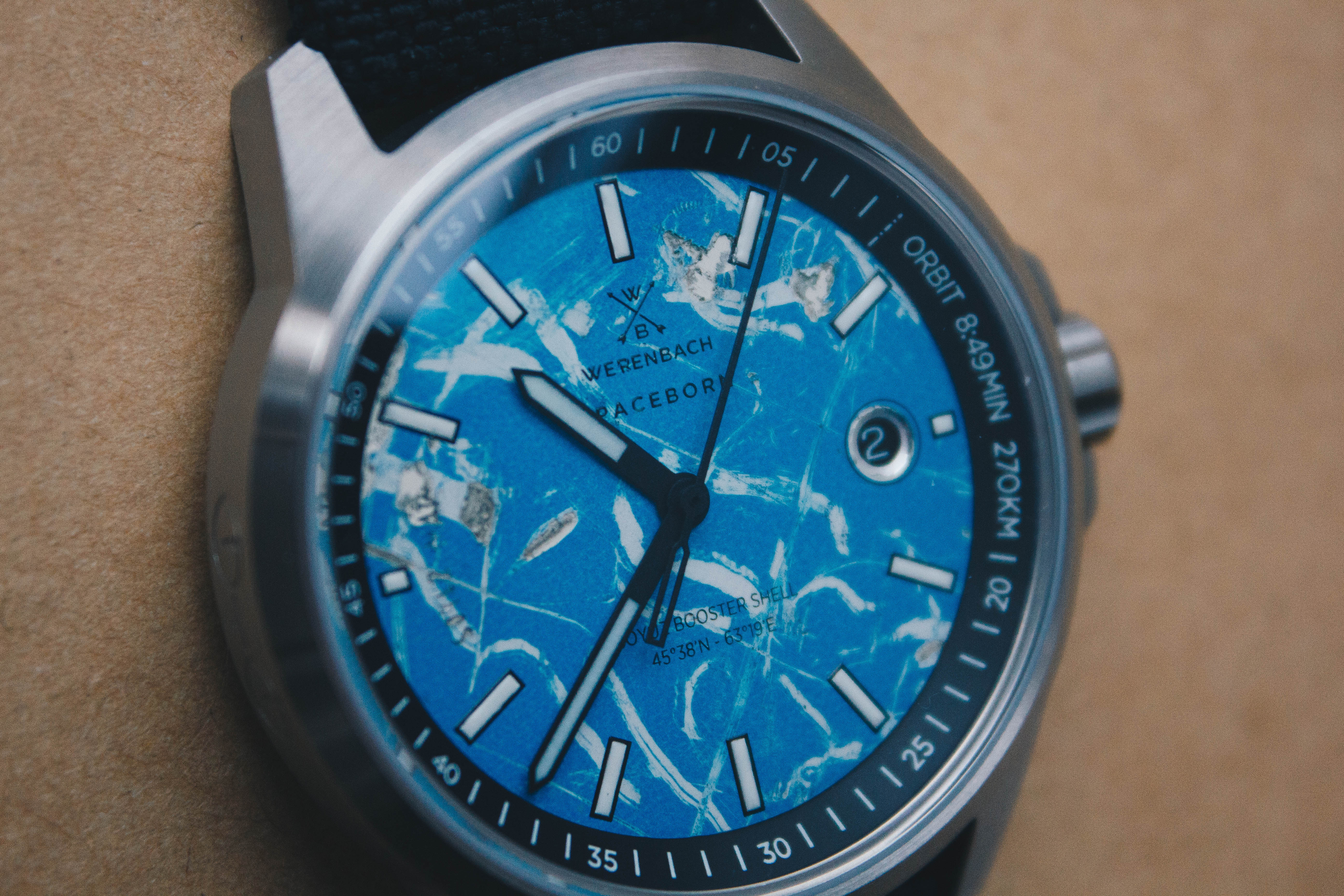 Werenbach Leonov collection B.T.O. Blue (Review) Dial made from Soyuz rocket shell