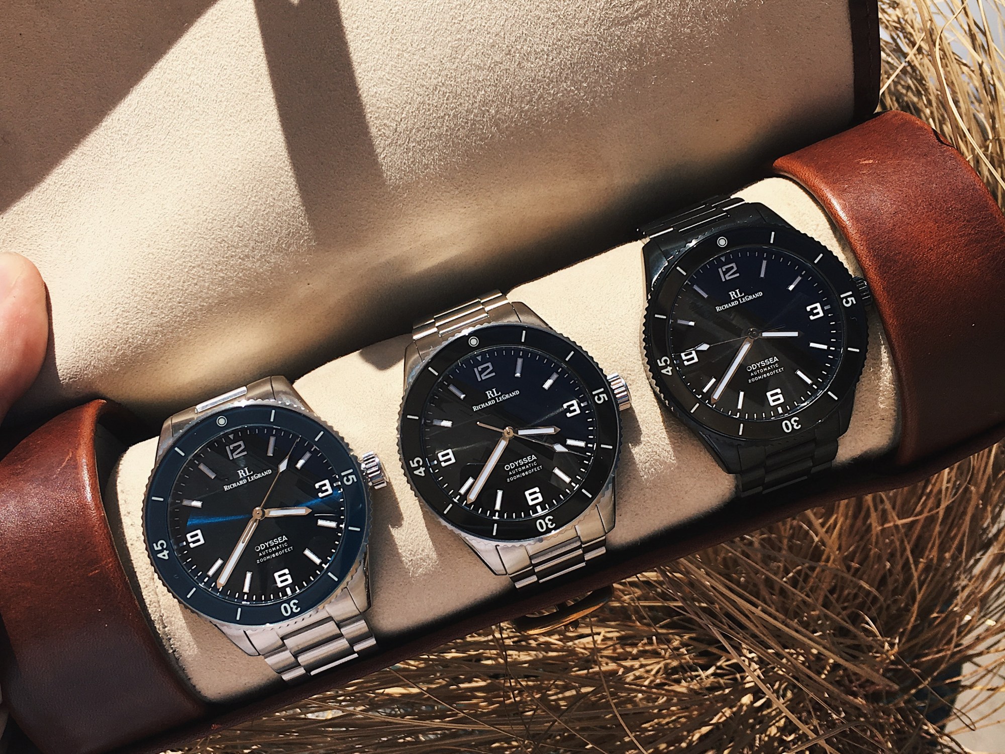 Today we are gonna look at some watches from a company called Richard LeGrand and this is one exciting company because they sent me their whole dive watch range to review. Alo it is quite exciting because they are very affordable with great quality. So the company is called Richard LeGrand. It is a microbrand company based in Singapore. They first went public in 2016 December with the Odyssea MKI, but today we will be looking at MKII version of the Odyssea. The MKI was funded through Kickstarter and got 181 backers who pledged $ 63,800. The MKII was also funded through Kickstarter and got 105 backers who pledged $ 35,957. With the MKII version, they listened to backers and people and learned from the previous choices to make it even better. The Odyssea MKII now has ceramic dial, bright blue lume, thinner case, upgraded bracelet and a super cool stamped case back. Before we take a closer look at these beauties, let’s talk with the companies founder Alson Lee.
