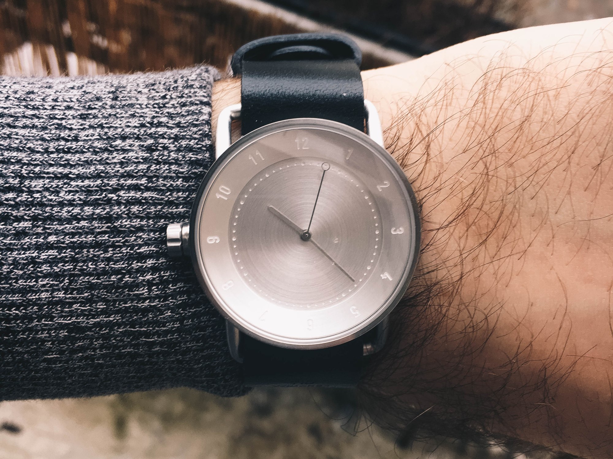 The TID NO.2 came in a small square cardboard box. You really can see that Swedish design with that super simple and clean packaging design. Inside the box, you will find the watch head and one piece leather strap separately. Also there you will find the code for registering the watch to get a warranty. The first impression for the NO.2 was good. The case is basically the same as the NO.1, but here we don’t have the PVD and black dial, but everything is in a bare steel colour with a nice satin brushed finishing. The NO.2 comes in two sizes, 36mm or 40mm. The one we have here is the 40mm version.