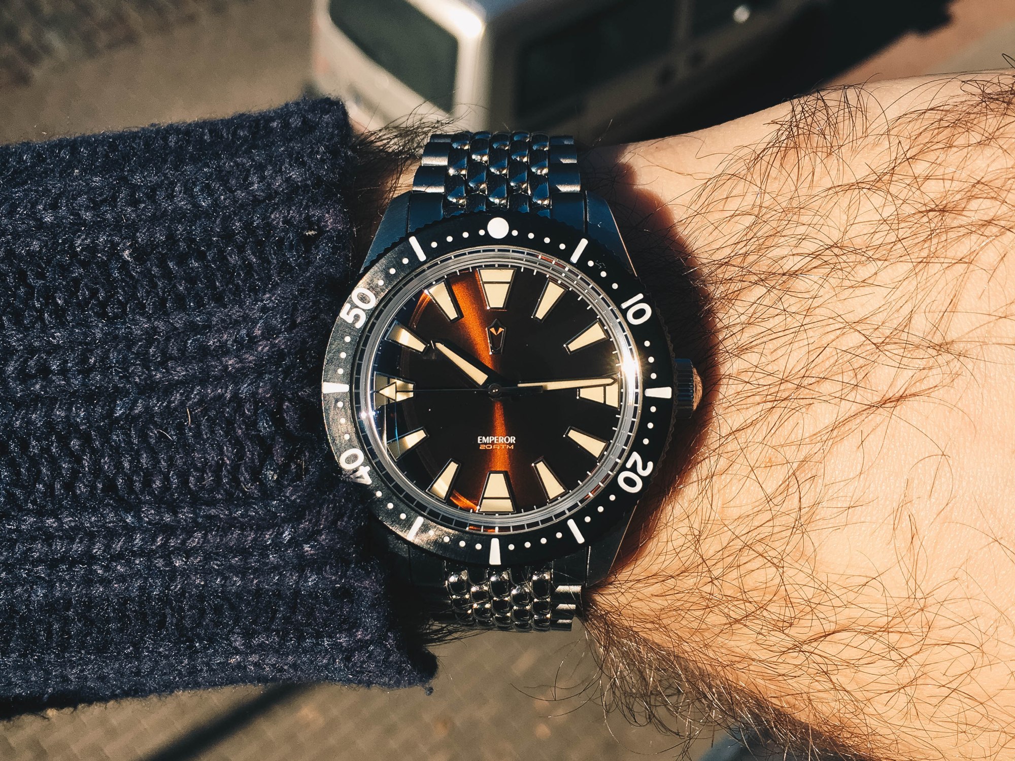 So as you know this is Watchuseek forum watch. Here is the link to the original post. The Emperor Diver is available in three colour variations: brown dial/black bezel, blue dial/silver bezel and black dial/black bezel. My personal favourite is probably the brown dial one that we have here for review. It just looks more vintage with the brown dial than other versions. Inspiration actually came from an old Technos diver, at least that’s what I saw on HKED’s Instagram. And I have to say, they really managed to capture the vintage watch essence with that dial, black bezel and especially with the “Beads of rice”(BOR) bracelet. When HKED contacted me about doing review of one his watches I was really excited as I was following both EMG and HKED watches since I ever started to read watchuseek about 4-5 years ago and since then I always wanted to review one of those divers as they looked so good and many people said so many good things about it, so finally I have the opportunity to check it out.