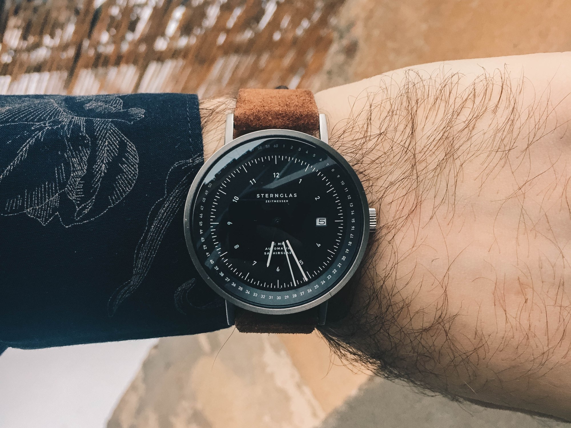 The movement that is inside the Topograph is Miyota Caliber 821A. It has 21 jewels, it beats at 21,600 BPH and the power reserve is 42hours. The movement is automatic, but you can also wind it with the crown. The rotor is customized, when I was in Hamburg, Dustin (founder of the company) told me how they do it. They basically get all the movement from Japan, take them to a guy who grinds off the top layer of the rotor so there is no writing and then engraved the Sternglas logo and other info on the rotor. And he said that it was very problematic to do as Miyota doesn’t send out movements with clean rotors, they all come with Miyota engraving. The movement is pretty precise, my example runs at +7 to +8 seconds a day which is pretty good.