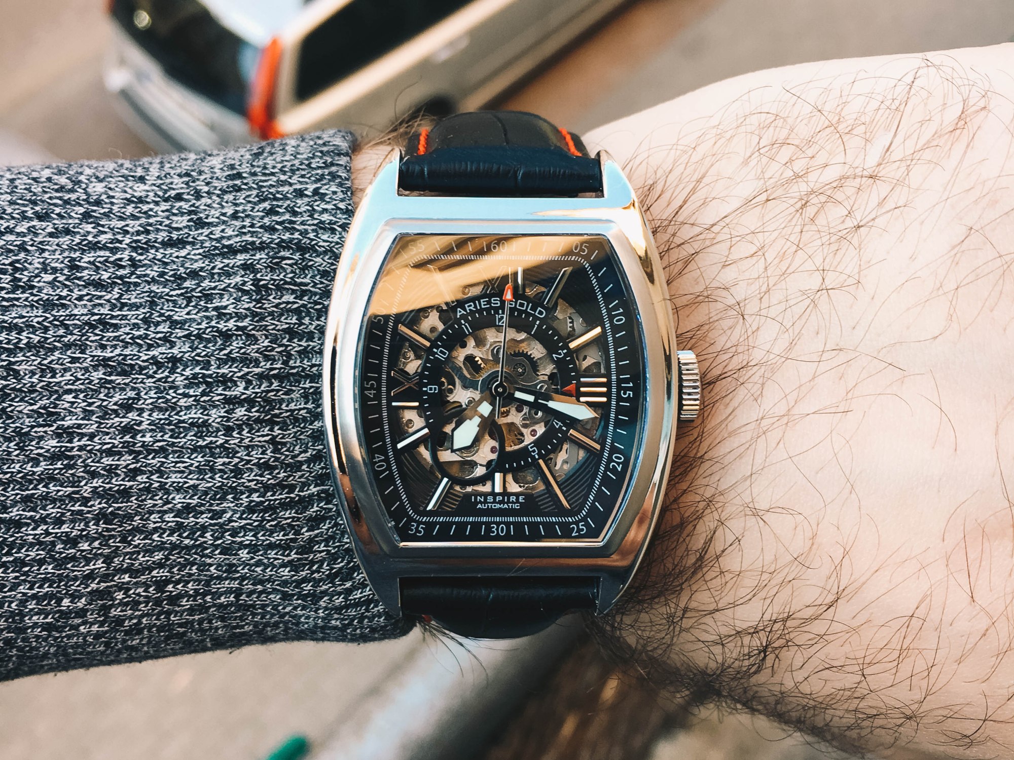 Today we are gonna take a look at another watch from Aries Gold. Previously we reviewed the Rocky watch and that was a real stunner in my opinion and pretty well built too. Today we are gonna look at maybe not so popular model in their range, but a good looking one in my opinion! The watch is called Cruiser and it is a rectangular case shaped watch with a skeleton dial. I know that in the watch world the square watches aren’t so loved and I don’t know why? Yes, they have some problems like water resistance, because rectangular crystal can’t hold as much pressure as round glass and also it is a pain to change one if it breaks. But I really like rectangular watches and especially Franck Muller ones or The JLC Reverso (my father actually has one and I hope I will own one too someday to match his Reverso).