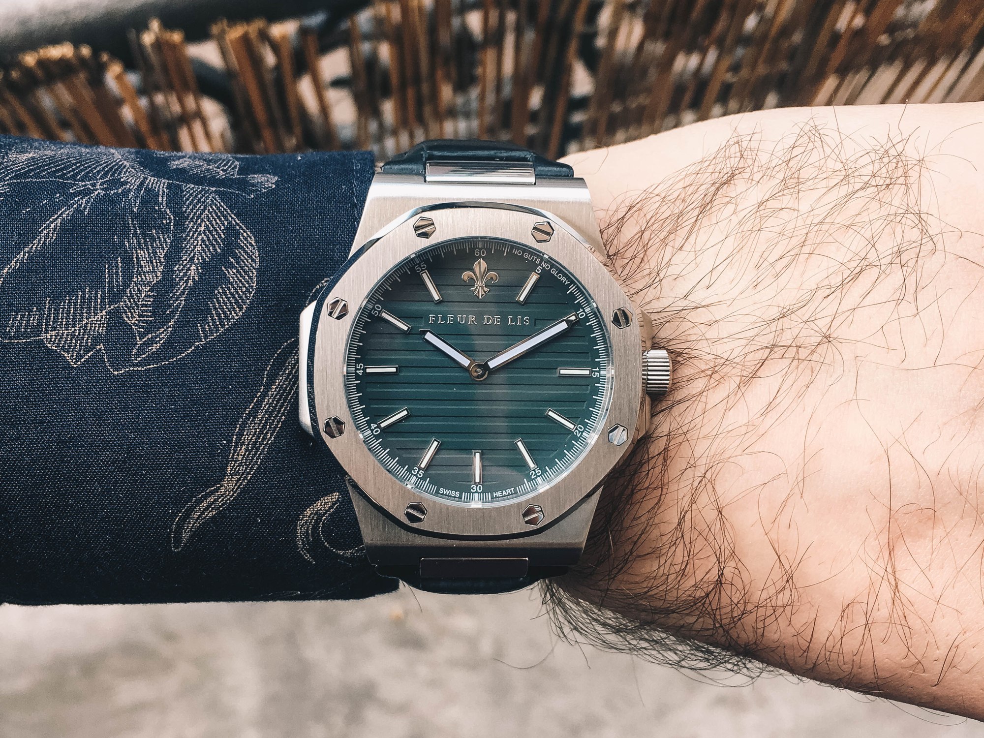 Today we are taking a look at a very cool watch in my opinion! The watch we are taking a look at today is from a small Australian company called “Fleur De Lis” which from French translates as “Lily Flower”. The company was started by two close friends. The company right now has 3 models. But the one that stands out is the AL line which is a Patek Phillipe Nautilus and Audemars Piguet Royal Oak put together to make the watch we have here! I usually am not a big fan of these Royal Oak or Nautilus homages as no one can’t seem to do it right, but this watch is a perfect iteration of them both in my opinion! The watch we are looking at today comes in two dial colour variations: white and grey. I chose the grey dial version as I’m not a big fan of white dials.