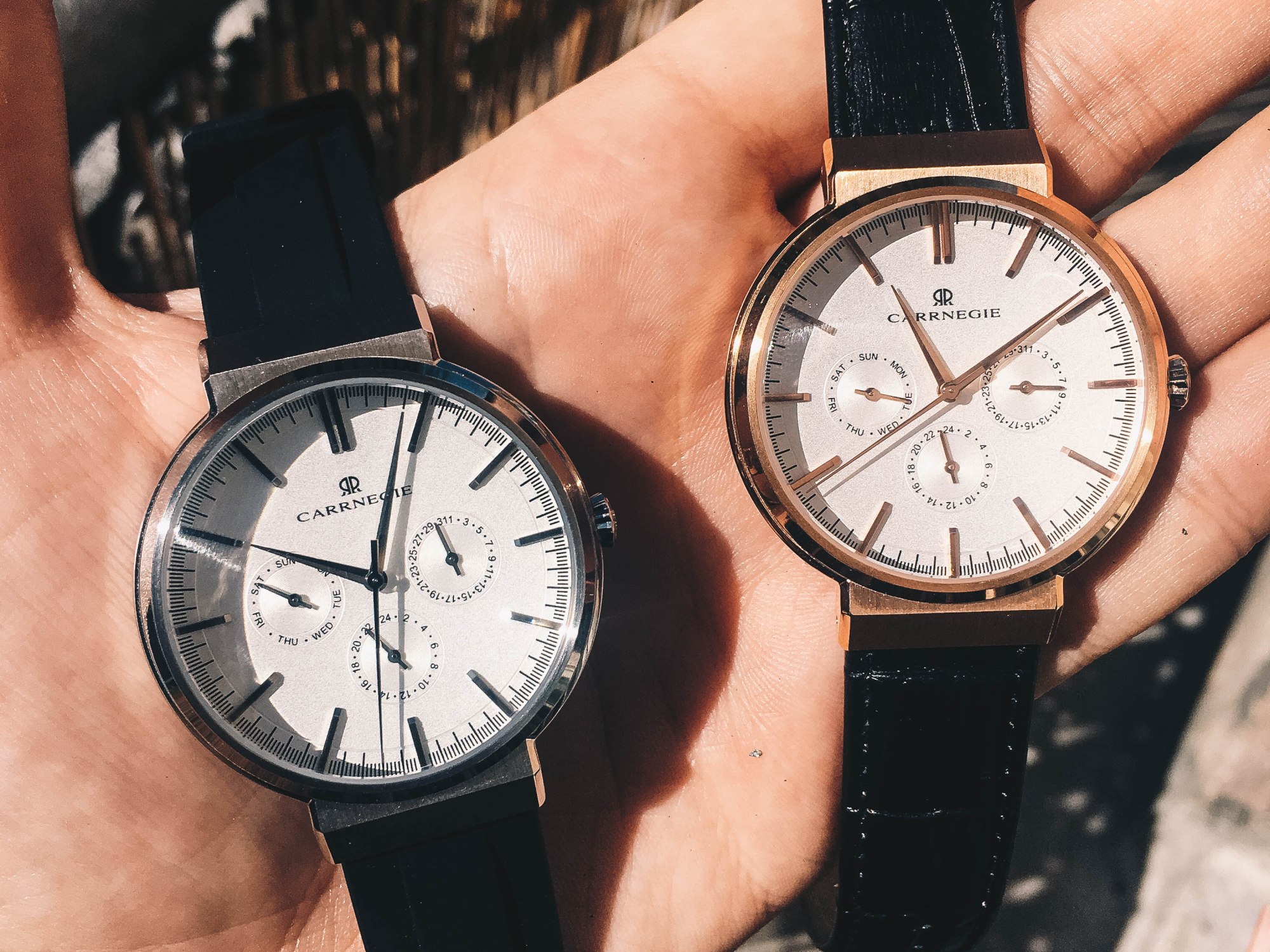 Today we are gonna take a look at a new company called Carrnegie. I have seen them on a couple of review websites and wanted to check them out by myself so I contacted them and they sent me 2 of their bestsellers! As most of the microbrand watch companies, they also started with a Kickstarter project. About a year ago they got funded there and got backed by 165 backers. I think why their watches got funded is because of the original design and pretty affordable price. I think they are pretty attractive watches for the price, so let’s dive deeper and test if they also are well made!
