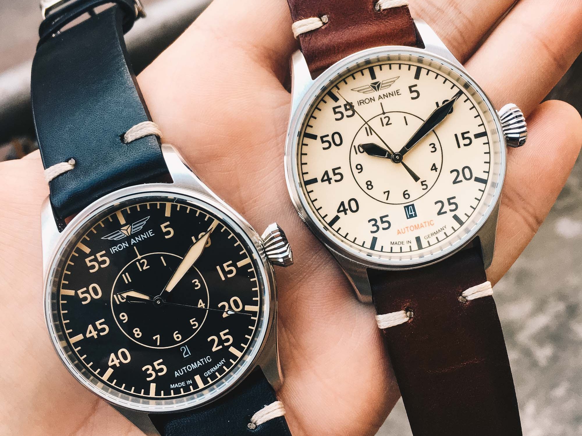 The straps that came on these watches are vintage-style calfskin straps. On the cream dialed one we have brown calfskin strap and on the black dialed one a black strap. Both have white contrasting stitching at the lugs and at the ends. Both have tang style buckles signed nicely with a deeply engraved Iron Annie logo. The leather is a bit stiff at first, but after a couple of days of wearing the watch, it will take your wrist shape and will be much comfortable to wear. The strap nicely tapers from 22mm at the lugs to 20mm at the ends. Both straps are handcrafted.Overall I really like both of these watches! They are really well made and finished. The price on the tags is 499€, but you can find them a bit cheaper on some stores. Both of the watches are really well built and finished, have Swiss movement, are Made in Germany, has a sapphire crystal on both sides and has a really nice leather strap. Even my girlfriend loved these watches and wore the cream dial one for some time. Can I suggest this watch? I think yes, the brand maybe isn’t that known as Laco or Stowa, but I think they have been getting some attention from watch enthusiasts!