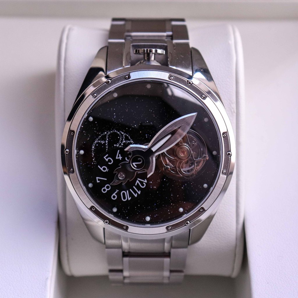 So let’s dive into the review! The watch arrived in a pretty big box. You take off the cardboard outer and you will find a box wrapped in ERA logo signed paper with wax seal stamp with ERA logo. You really can see that they take a lot of attention to the unboxing experience. Outside the box is signed with star logo which I guess is for the name Hyperion. Inside piano finish wooden box you will find a brochure with all the idea behind the company, how to operate the Tourbillon movement, how to read the wandering hours complication and etc. Also, inside the box, you will find the spring bar tool, link pin removal tool and a metal authenticity card. The first impressions were just wow! I was waiting to review this one for a long time since I saw the renders! And ERA has really gone crazy with this watch! It is probably the craziest watch I have reviewed so far, hahaha!