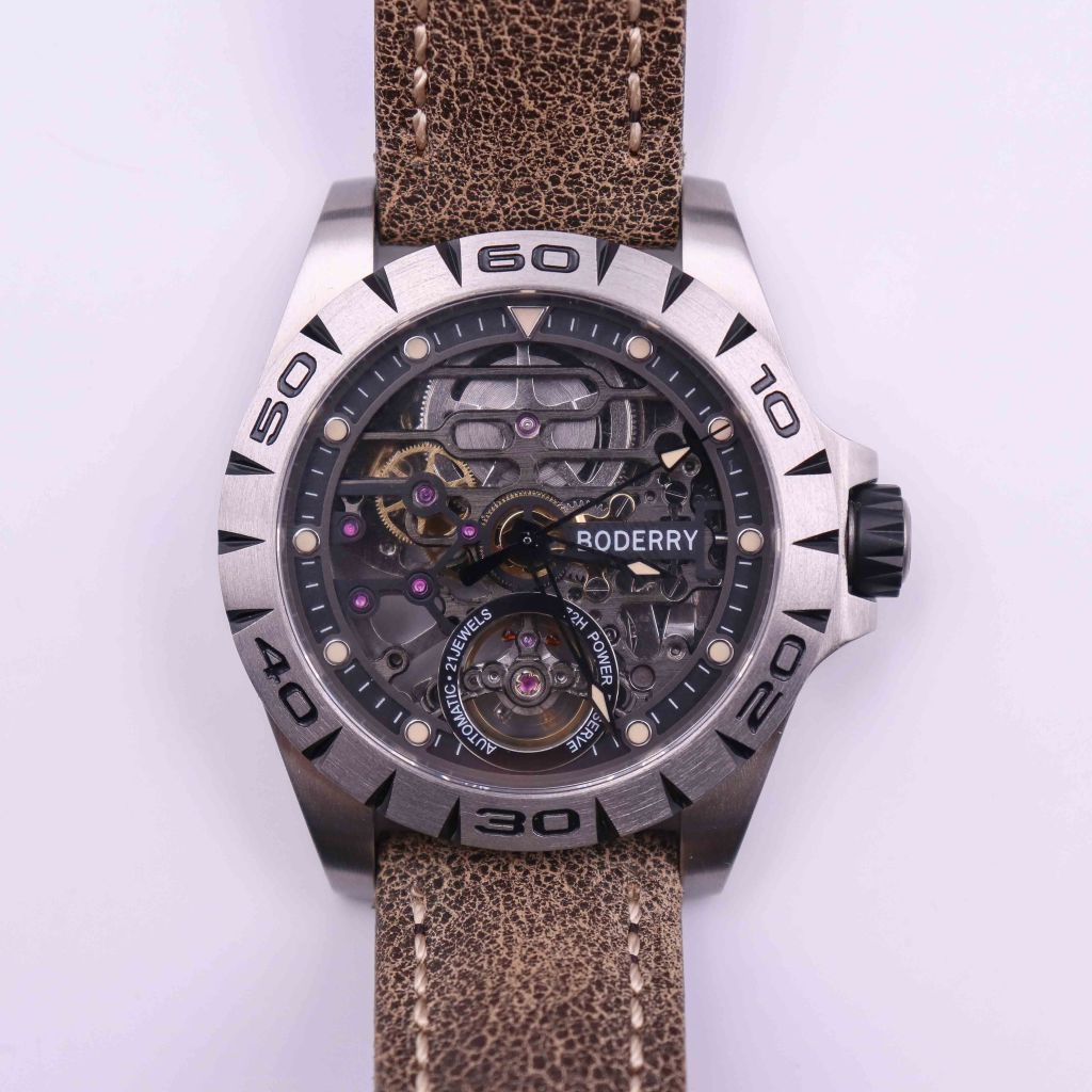 Today we are gonna review a watch from a company called Boderry. It is an Aliexpress store, but they also have their own webpage boderry.com. They have many watches for sale, but what intrigued me was the one we have in for review because it has a Titanium case, skeleton 72h movement and sapphire glass and the watch costs just slightly under 150$. Anycase I contacted Boderry and they sent me one sample in for review.