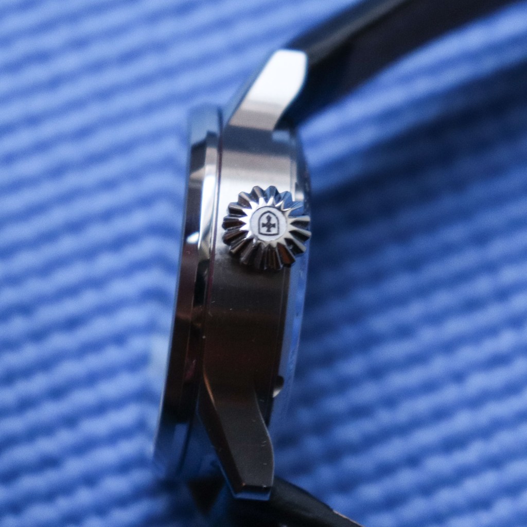 The dial is matte black and very nicely made! The applied 3D silver numbers are applied with Super-LumiNova® T3 grade A. I really like the applied numerals as they are very bold and very easy to read even at the slightest glance! At 12 o’clock we have the classic pilot’s watch triangle with two dots on each side. It is an integral detail on Pilot’s watches since the early time of B-Uhr (Beobachtungs-uhren, literally Observation), which was made to allow a pilot to immediately figure out the 12 o’clock indication in relation to the upright orientation of the dial, and hence to read the time at a glance, both during daytime and nighttime. At 12 o’clock we have a printed Biatec logo and at 6 o’clock we have an applied model name in silver colour “Corsair”. Around the dial we have a minute track and on the 6 o’clock we have writing “Made in Slovakia” which I doubt you will find on any other watches than Biatec. The sword shaped silver hands are filled with Super-LumiNova® T3 grade A. Overall the dial in my opinion is very well executed and super legible! The lume on the watch is pretty good, it glows bright and for about 1,5-2 hours.
