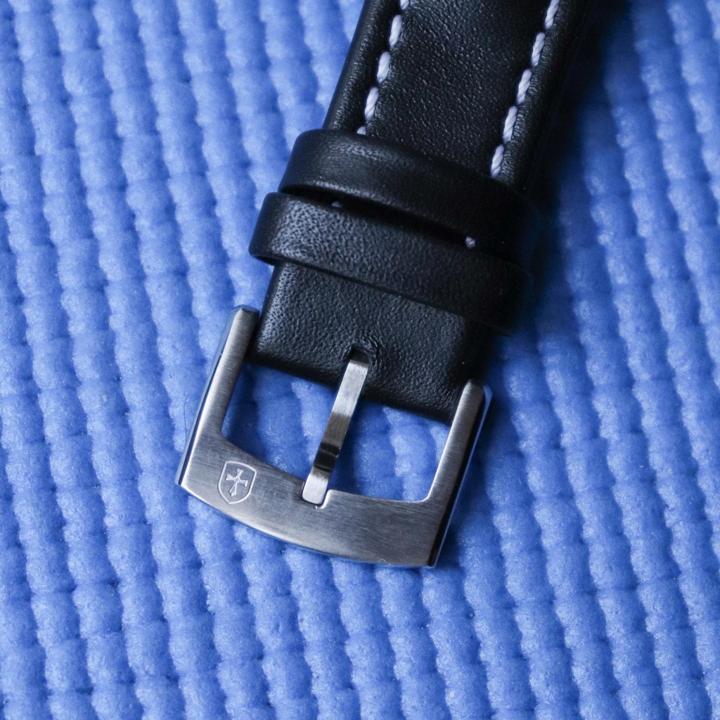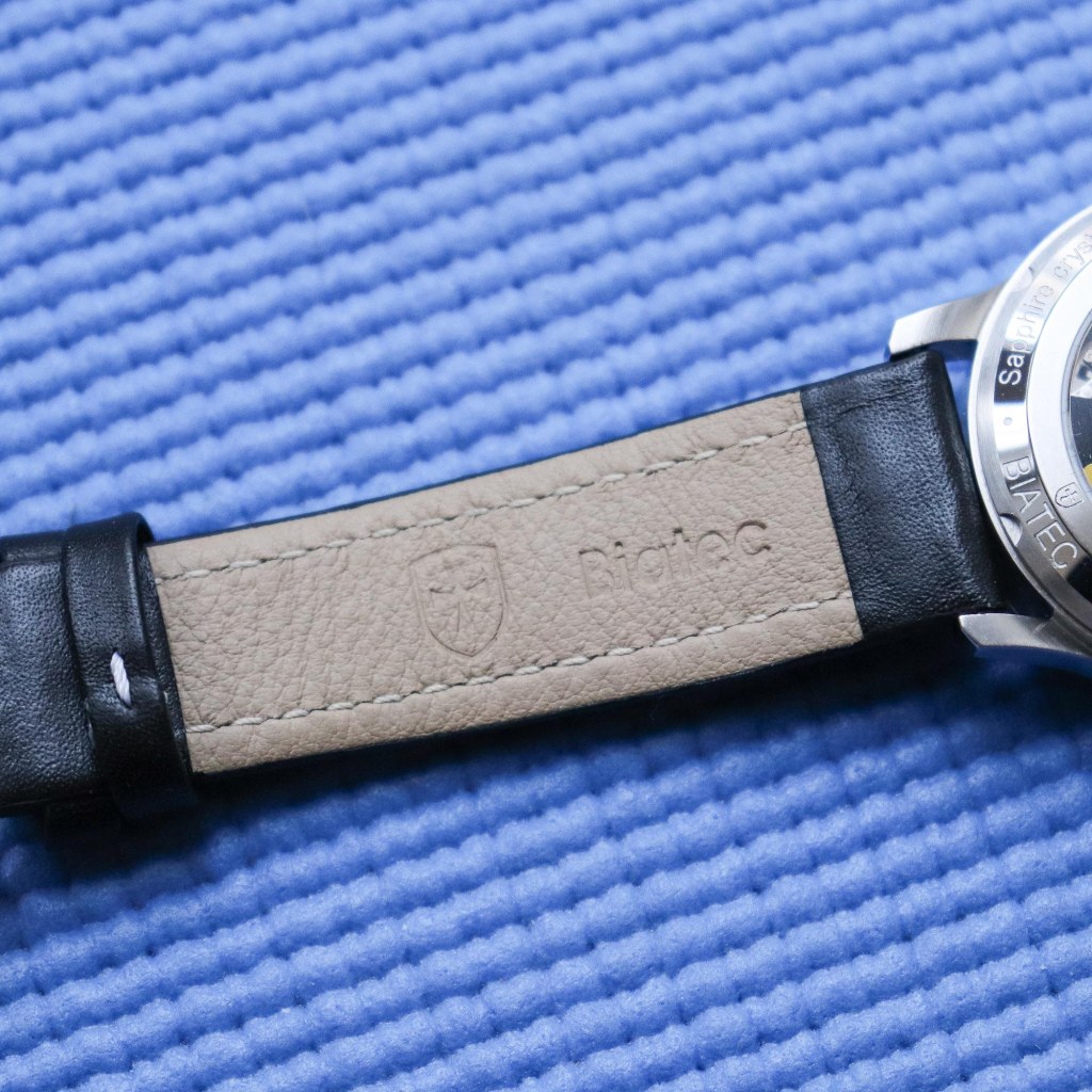 The strap that came with the watch is a black leather strap with white contrasting stitching. The strap has a nice taper and it measures 20mm at the lugs and 18mm at the buckle. The strap is padded and the part at the lugs is 7mm thick. In my opinion the strap should be thinner as the watch is small and it kind of looks weird on a strap so thick. Despite the padding the strap was actually super supple and soft, and hugged the wrist right away! The tang style buckle is made of 316L stainless steel and is signed with Biatec logo. The buckle has a satin brush finishing on top and the sides with bevels are high polished. It is nice to see that Biatec takes attention to the smallest detail as many brands forget to finish well or design the buckle.