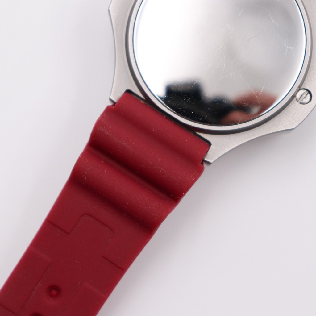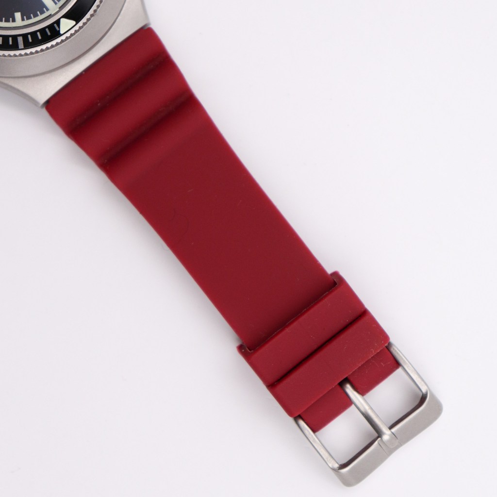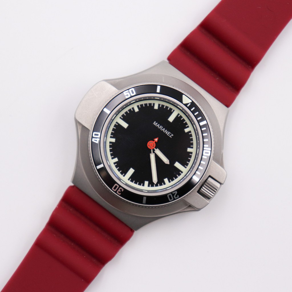 Red silicone strap which has this diving strap styling like Seiko does is also pretty good. The silicone is super soft to touch and super comfy! Also as you can see the strap suits really good a watch with hidden lugs like my Maranez spy watch! The things I don’t like is that it doesn’t have quick release spring bars, I just think it is weird that all the other straps have them and this one doesn’t. Also I don’t like that it collects lint, but that is a problem for most silicone straps, even high end ones.