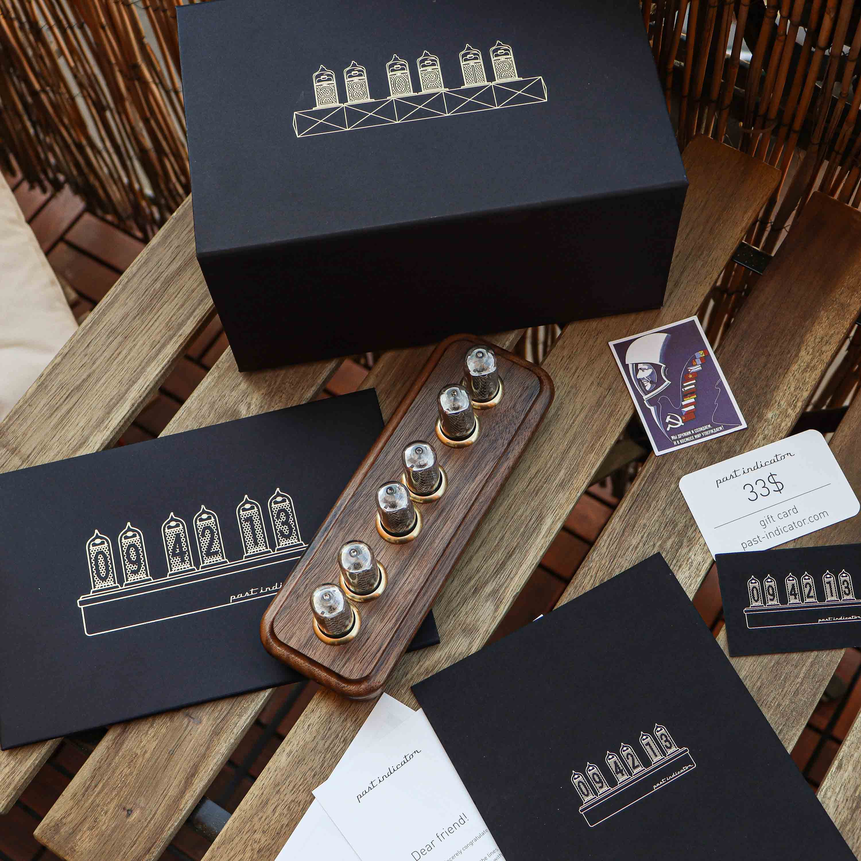 I actually have been a fan of Nixie tubes for some time and if you find this interesting I would love to tell you more about these amazing devices! But today we have a table clock from Past Indicator. The company was founded back in 2012, Russia (Moscow) when the founder Vadim Antonov found a couple of these tubes in the attic of his Grandpa. Past Indicator is probably the most known company who makes these clocks. Mostly all these companies are based in post-soviet countries as the tubes were made there. Past Indicator use new old stock nixie tubes in their clocks, from tubes made in the 70-80s. They source them from all over former USSR countries (Russia, Belarus, Ukraine, Kyrgyzstan, Armenia, etc.) and save them from being destroyed. They give these tubes a second life!