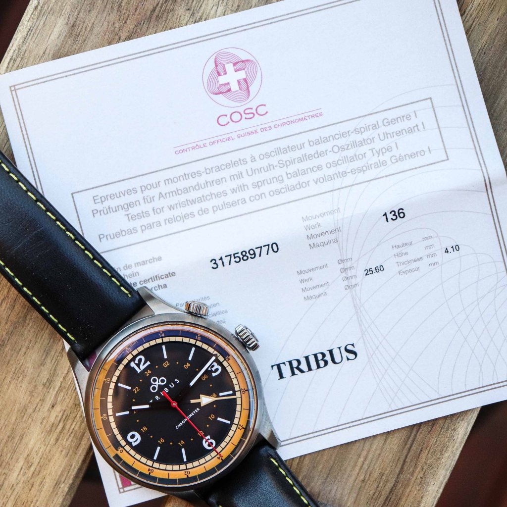 So you might ask what is COSC? The COSC or Contrôle Officiel Suisse des Chronomètres is the Official Swiss Chronometer Testing Institute, it is the institute responsible for certifying the accuracy and precision of Swiss watches thus making them Certified Chronometers. Oh and fun fact: over a million official chronometer certificates are delivered each year, representing only 3% of the Swiss watch production. And that means that only 3% of Swiss made watches have COSC certificates meaning that Tribus goes under those 3%.
