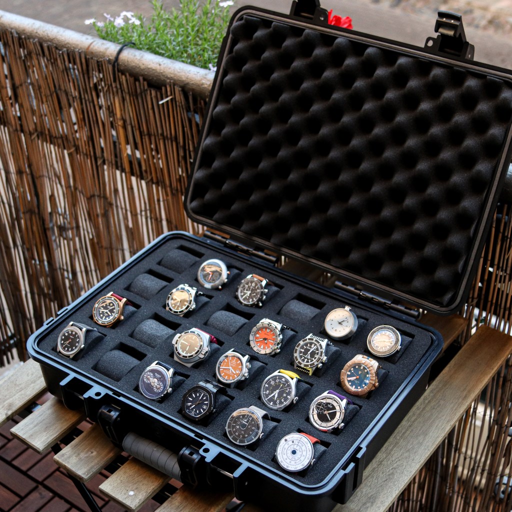 So the case I found and ordered for my birthday is the Kronokeeper waterproof case for 24 watches! Sadly due to Suez canal problems the shipping took extra 2 months and only a couple of weeks ago I finally received it! And wow! The case is amazing! I was blown away by the quality and everything is how I wanted! I was also surprised that the case has a strap to put the case on the shoulder.