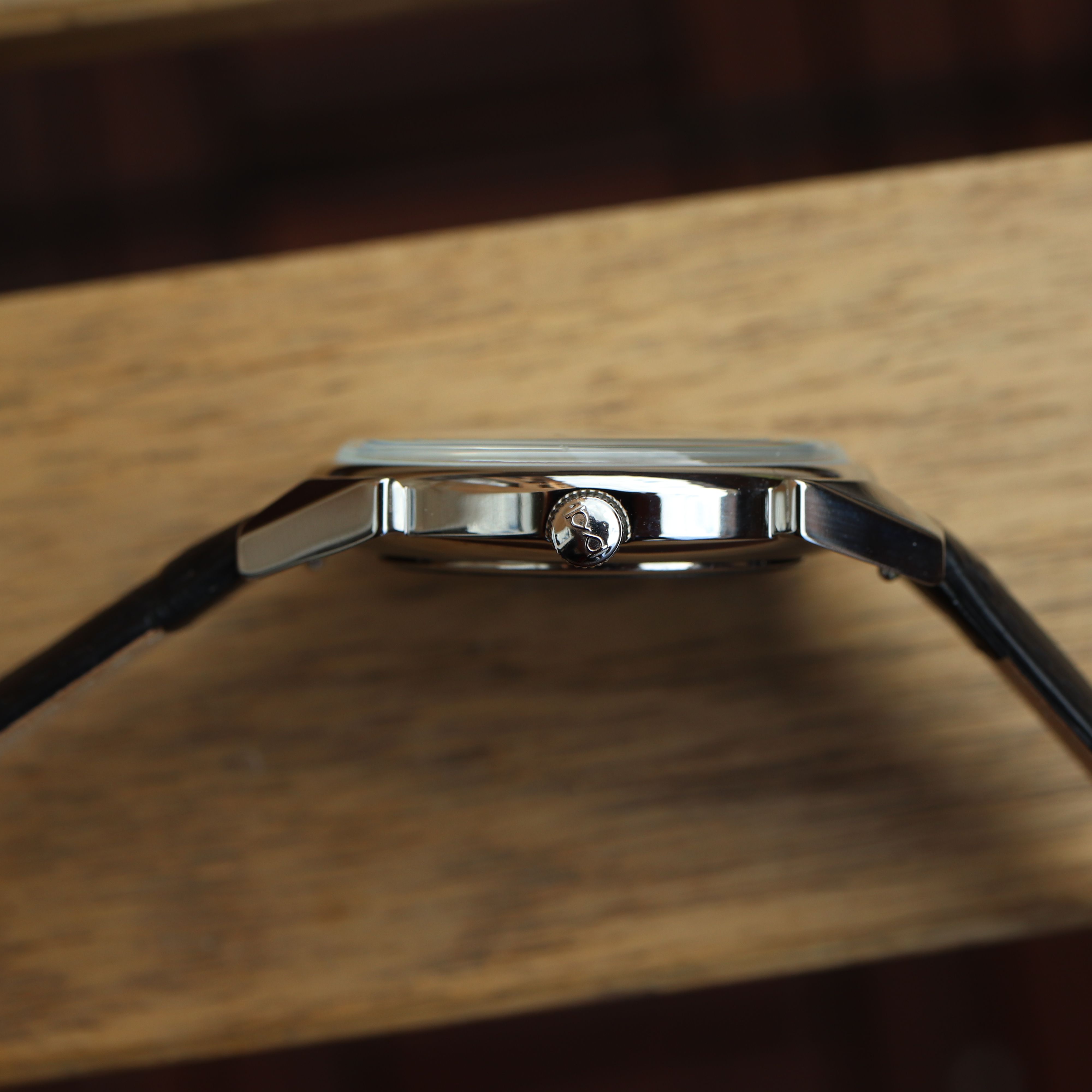 The movement inside is some kind of Japanese quartz from what I can read on their website. I think it is one of Miyota quartz movements. Very commonly used movements in this price range. The strap is just a generic black crocodile print one. The stitching is really nice and the strap is very soft and curves the wrist nicely, despite its thickness. The strap has a 20mm width and has quick release spring bars, which are very useful when changing straps. Hope all watch companies put quick release spring bars in their watch straps, that would be a much faster process. The buckle is this vintage looking one, I think it doesn’t suit this watch, I think they should’ve used the commonly used buckle or maybe something that looks similar to those stunning lugs of the case, because this looks like it is made for some military watch and not a dressier piece.