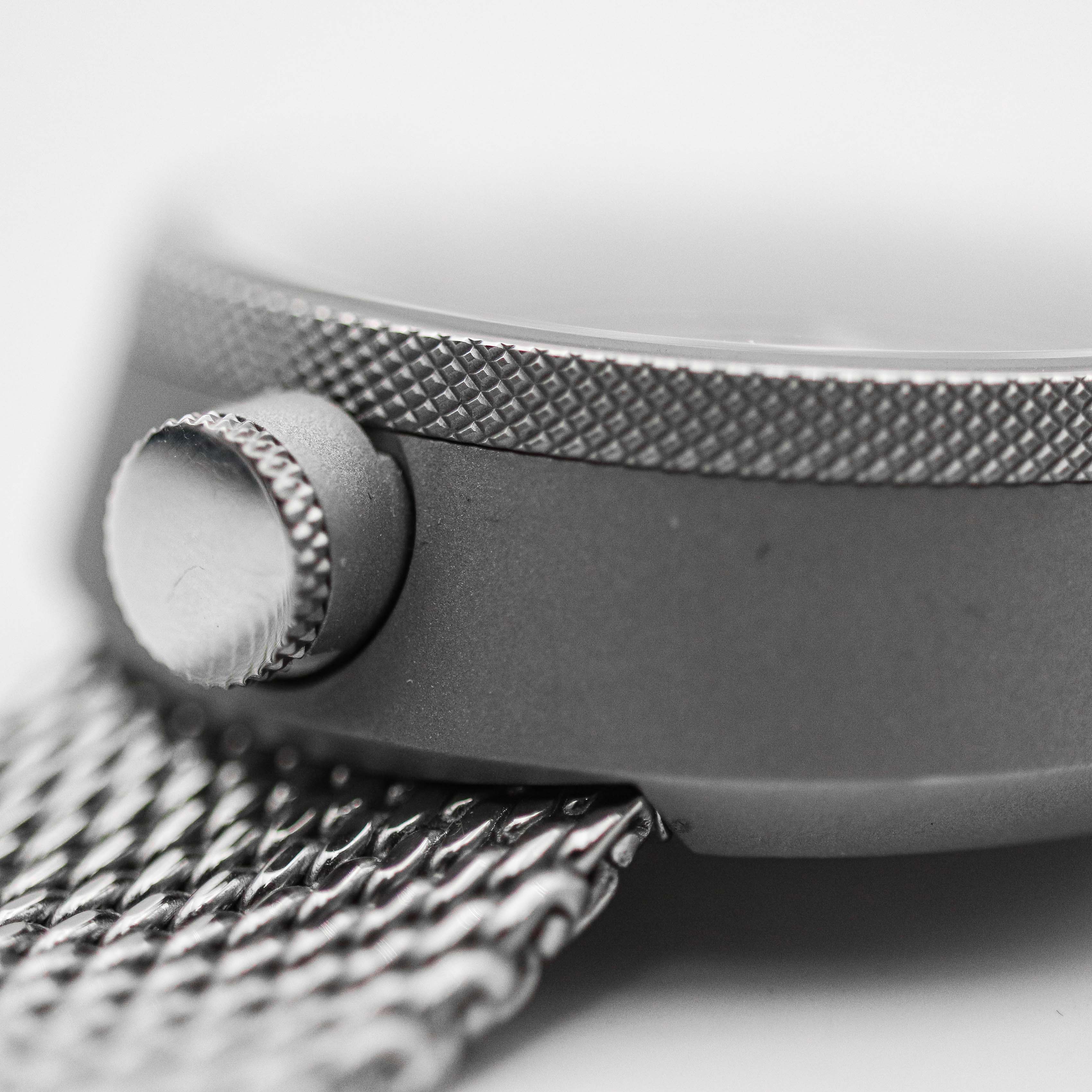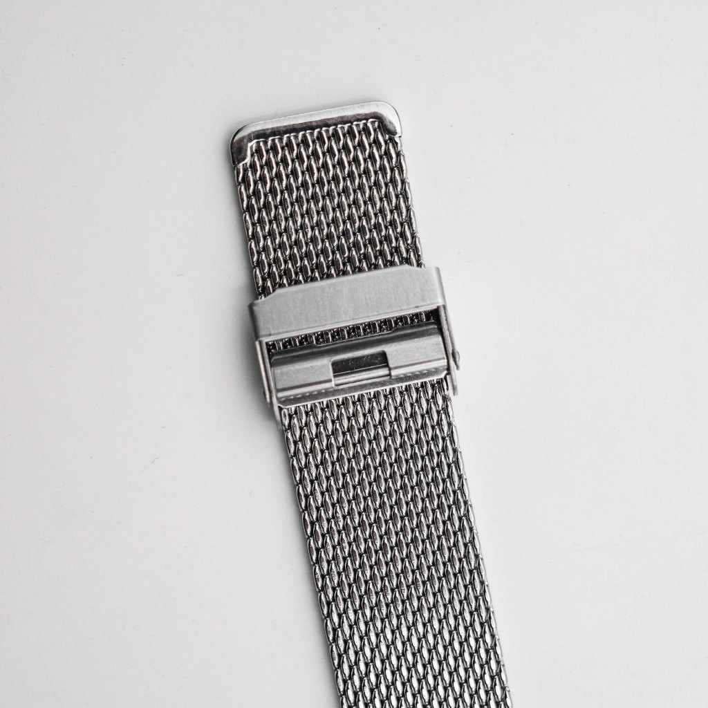 The Milanese bracelet that came with the watch is really amazing! It’s thick, smooth and hugs the wrist better than any other metal bracelet can. Also it is very well manufactured with no sharp edges or anything that would cut your clothes or skin and that is rare on milanese bracelets. The buckle is easy to adjust and you will find your perfect fit. The buckle is easy to adjust and you will find your perfect fit. On the wrist it sits comfortable, although if the bracelet is too loose the watch slides too close to the bottom part of the wrist because of how heavy the top of the watch is. I also like that you can basically fit any 22mm strap as it has regular spring bars. One thing that I would like is the quick release spring bars on the bracelet, it would make taking off their straps and bracelets easier as it is quite tight and not all spring bar tools fit there.