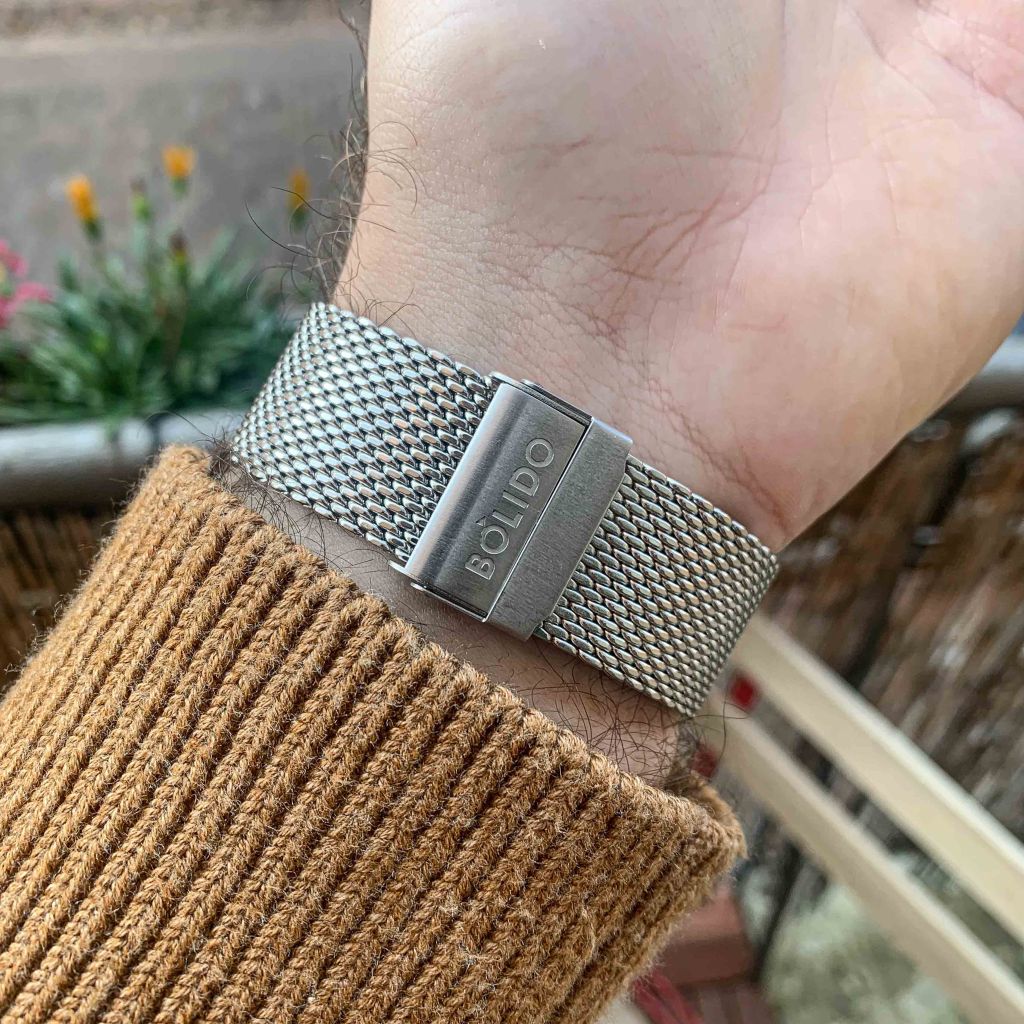 Overall I really like this watch, I think they nailed the design and I like that they stayed true to their original design of the rock watch. I enjoyed it so much that I wore it for the first week without wearing anything else which rarely happens with me. Yes, the price is 1024€ which isn’t a small sum to pay for a not so well known brand, but I have to say, they truly deliver! I have had many watches that cost over 1000€ and they are not always good, but Bolido really does bring quality to the table for that money. I think at this price range not many watches are 100% made in Switzerland and actually rarely you see bigger brand watches with 100% made in Swiss claim. Brands like Hublot, Tag Heuer, Richard Mille for example have 15-20% of parts made in China and other places. So what do you get from Bolido at this price? Well manufactured case, amazing design, flawless finishing, one of the best minimalist looking dials, Swiss made movement with nice finishing and running super well, sapphire crystals on both sides and one of the best milanese bracelet. Is the watch worth the money? Yes, but the design isn’t probably for everyone as not many like it, but none the less it is super interesting! Definitely worth every cent and more!