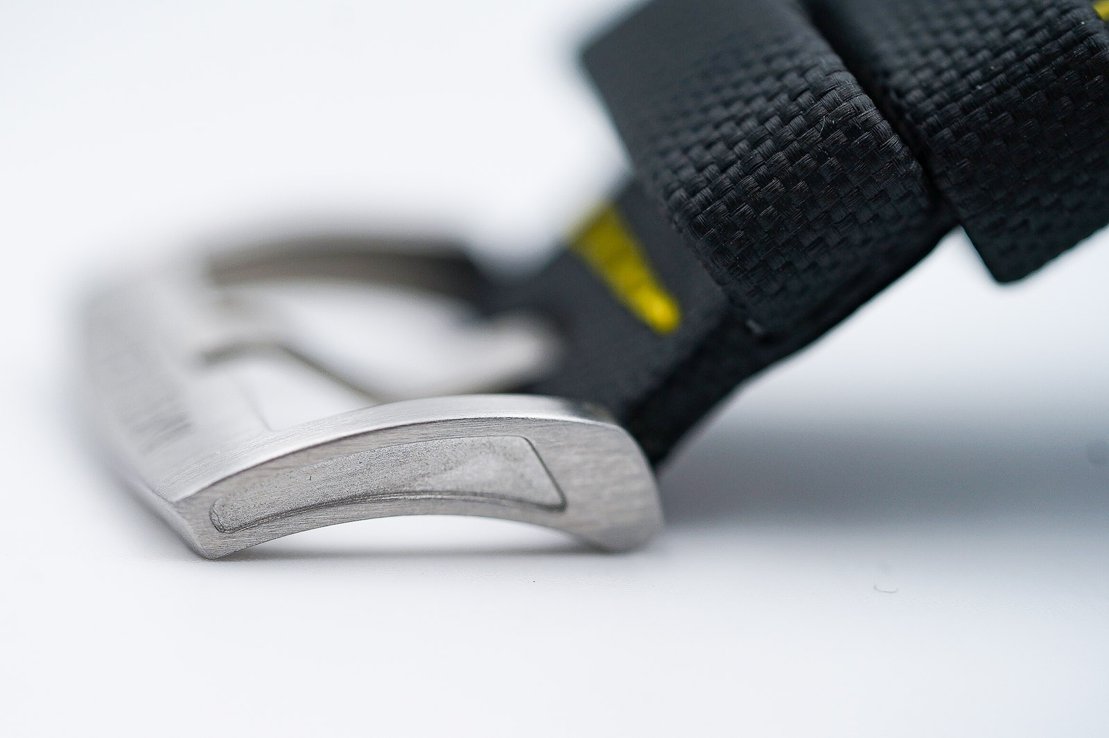 For the strap, I chose the leather band with yellow stitching to match the dial. The surface has a rubbery feel and a pattern that’s not quite fabric, nor sailcloth, but it says on the webiste it is leather, though it doesn’t feel like one. The underside is lined with black leather. While the quality seems excellent at first, after about three weeks of wear, I noticed some peeling on the upper layer—a quick fix with glue, but worth noting. There’s also a rubber strap option available, which I would recommend for more active wear. The good news is, this watch is a true strap monster. I’ve tried it on a range of aftermarket bands, and it looks phenomenal on brightly colored straps in particular.