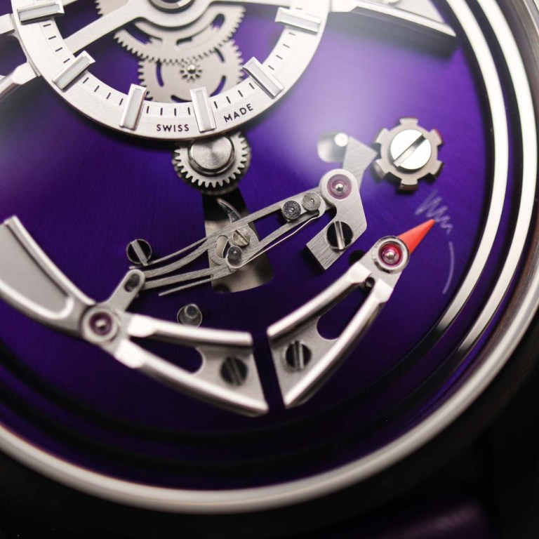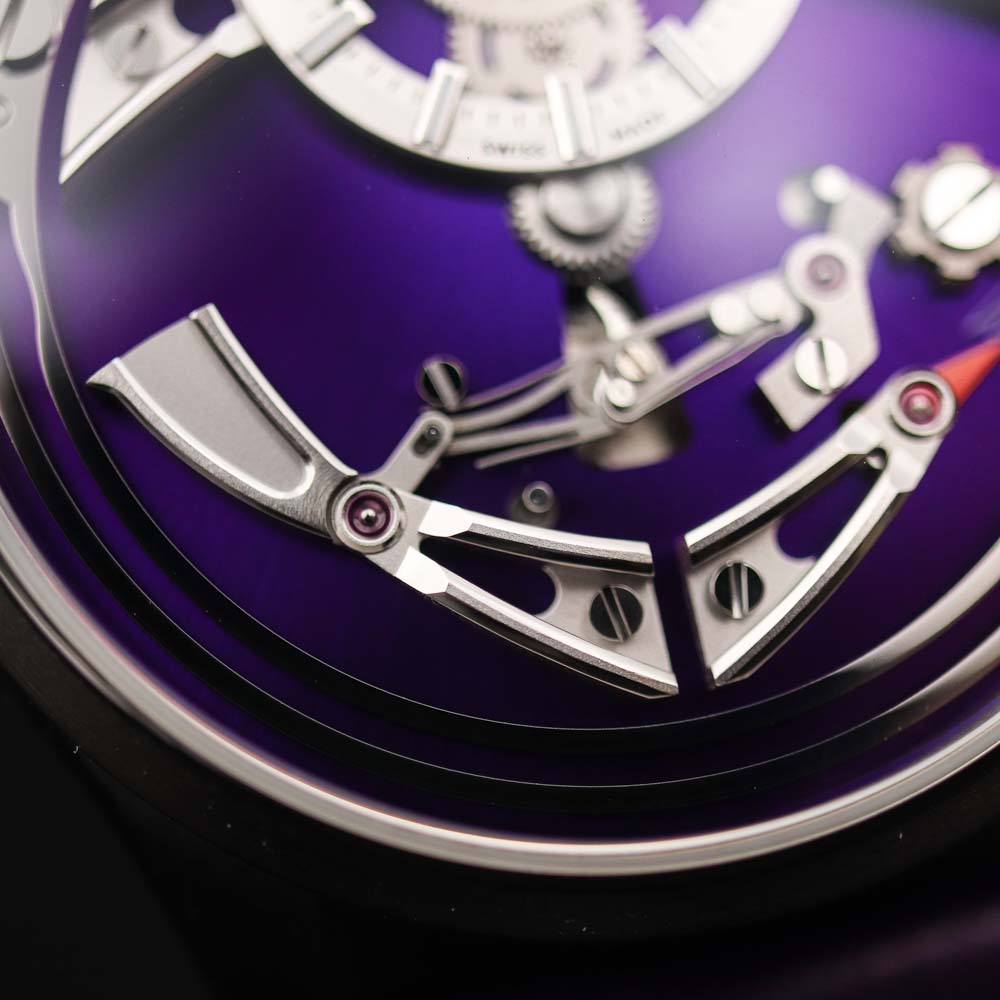 The purple dial is undoubtedly the star of the show. Purple also is a colour that needs to be implemented more into watches in my opinion. It employs a gradient effect that is both dynamic and captivating. The use of rhodium-plated indices ensures excellent legibility while adding a touch of sophistication. The skeletonized hour and minute hands are finished with a luminescent coating, offering functionality in low-light conditions. The absence of a second hand enhances the minimalist approach, ensuring that the focus remains on the chime mechanism.I’ve come across some discussions where people have expressed concerns about the dial size or suggested that Christopher Ward could improve legibility by adjusting the color of the hands or making other refinements. However, in my opinion, the dial is well-proportioned and offers sufficient legibility for telling the time with ease.