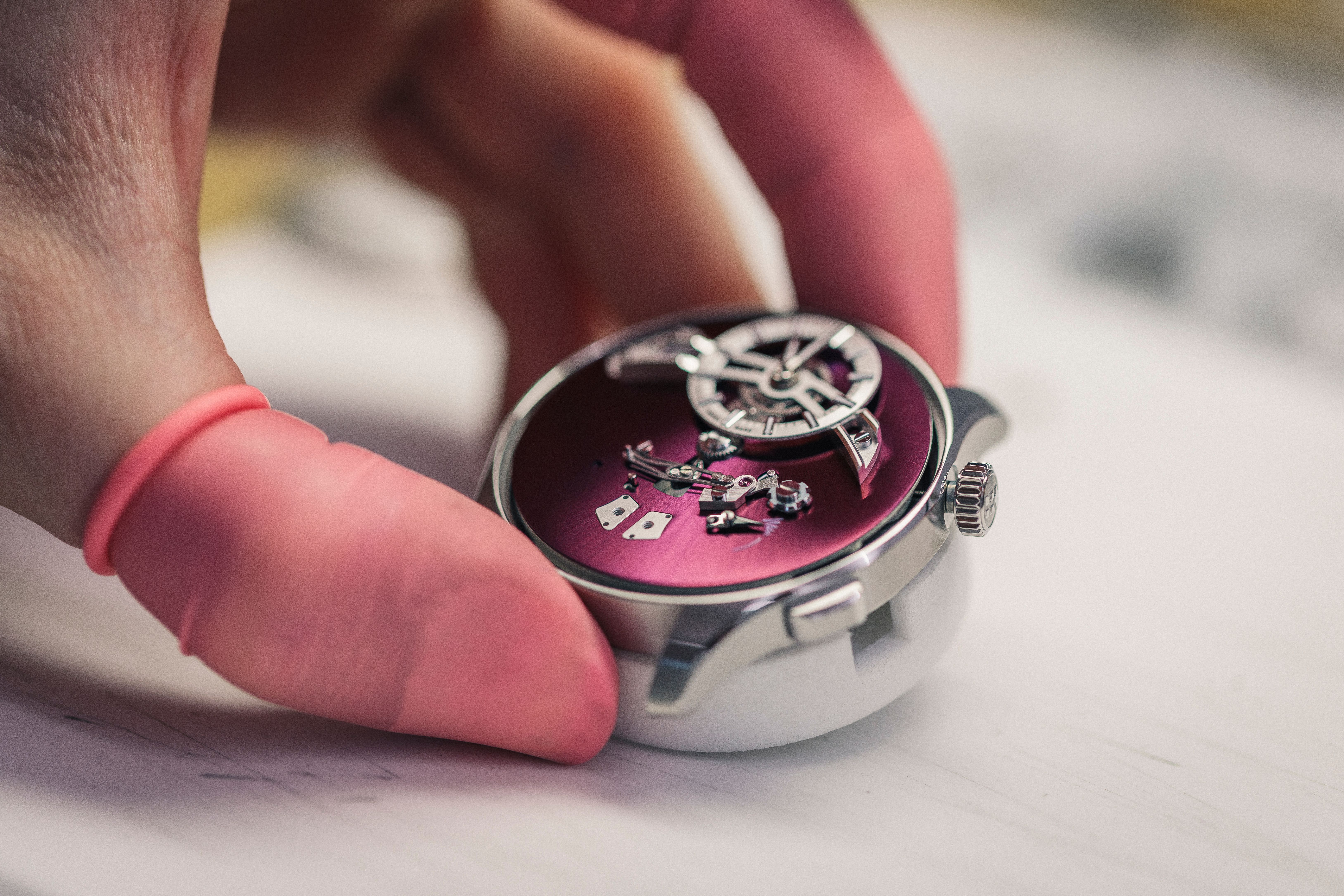 As it came time to assemble the watch, the team relied on talented partners to deliver the parts needed to make everything come together. Chronode (who has worked with major brands like MB&F) for the bridges, spring, and hammer. Armin Strom did the platine. After over two years of hard work and experimentation, they had a watch ready for its debut.