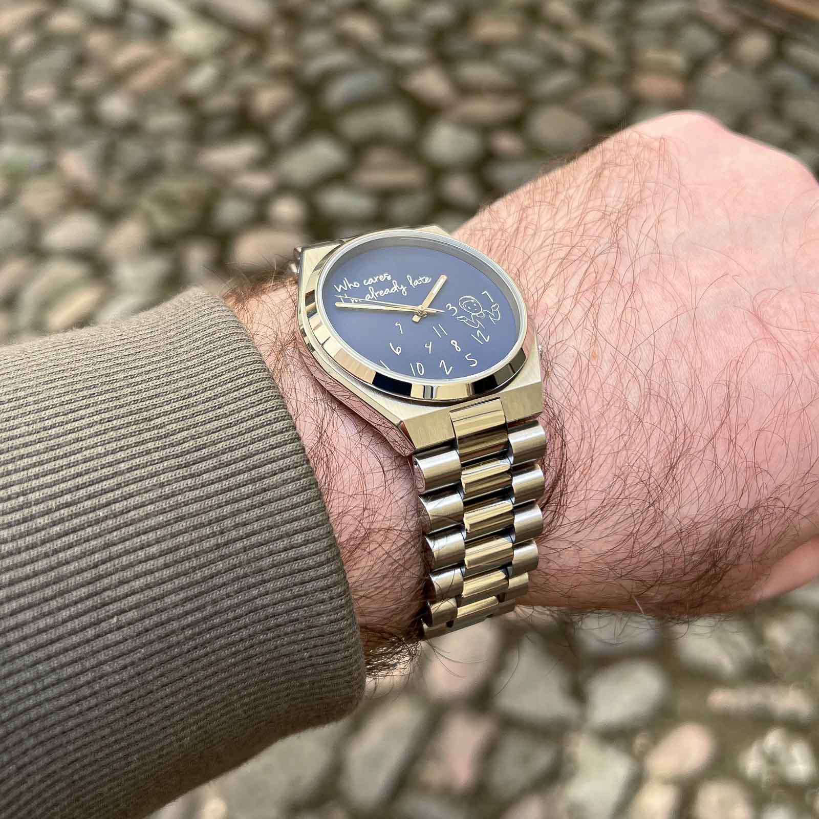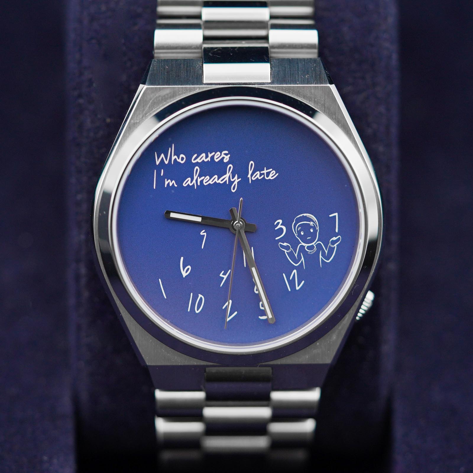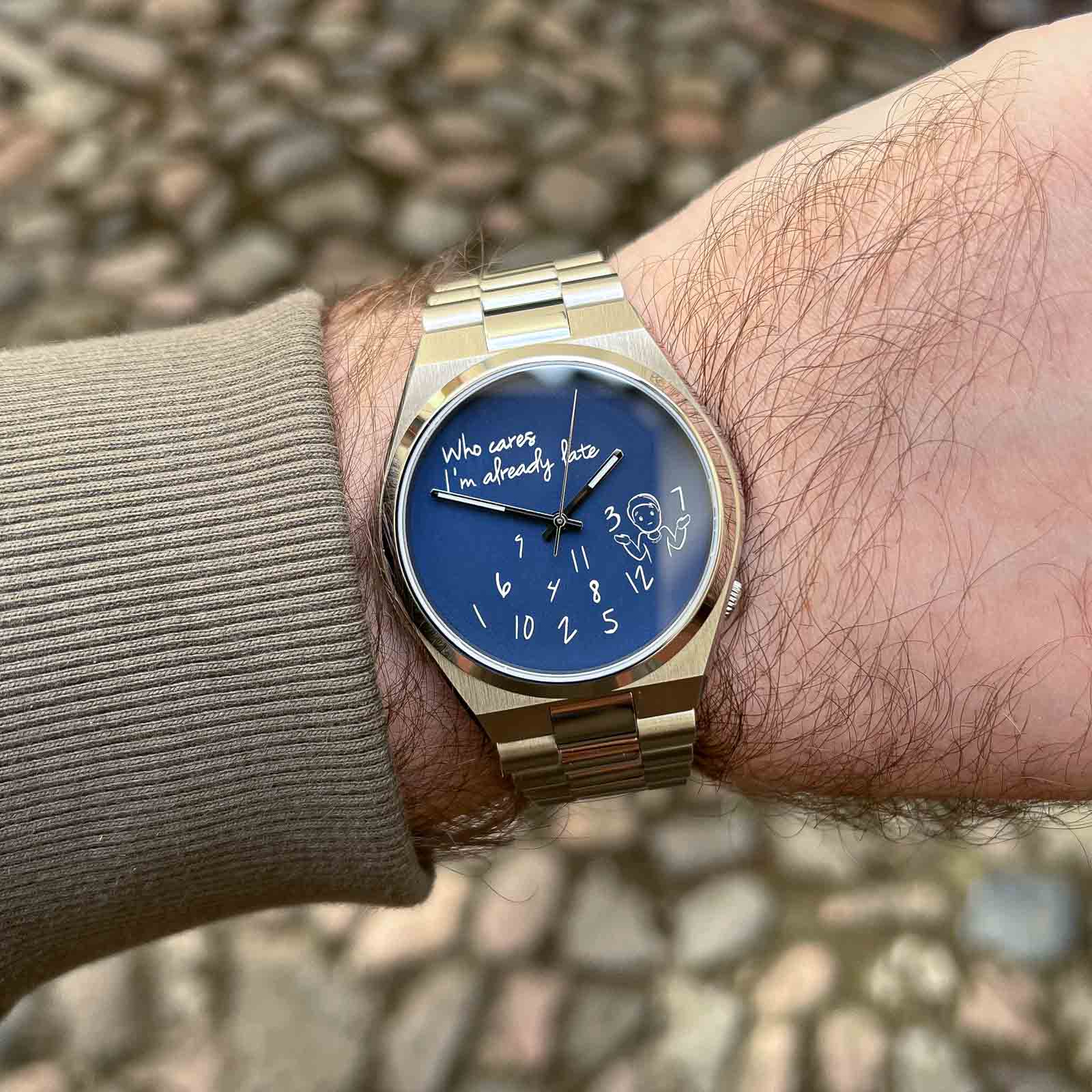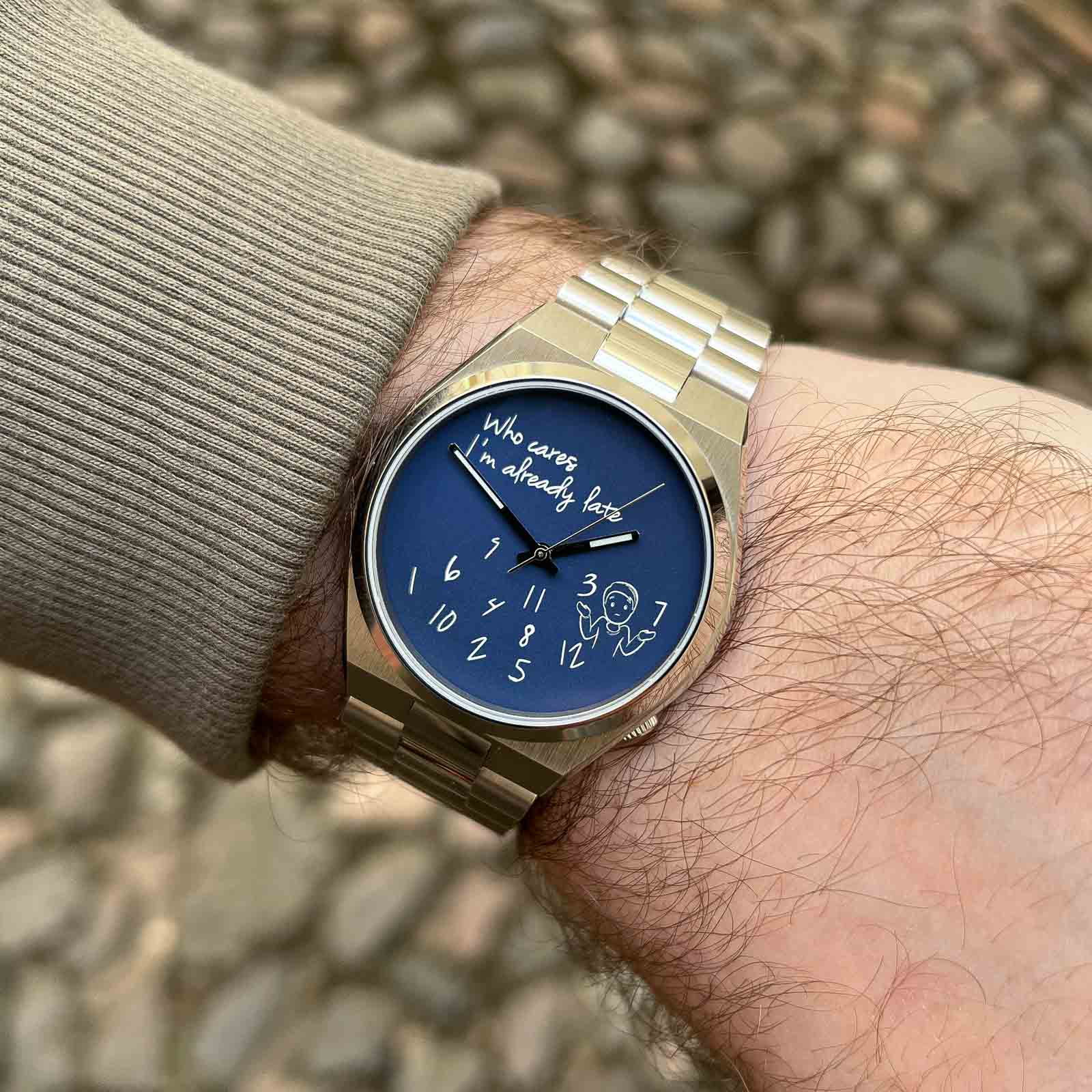 I reached out to IFL Watches to see if they would be open to lending a piece for review—and to my delight, they agreed. I didn’t request a specific model, but I was expecting something that truly represents what they’re known for. Instead, I received a variant with a rather basic dial design that doesn’t showcase the brand’s hallmark hand-painted artistry which was a slight let down. The “Who Cares I’m Already Late” design, in my opinion, feels quite ”meh” to be honest, compared to their hand-painted dial pieces. But the text and everything is crisp and the dial quality seems to be pretty good!