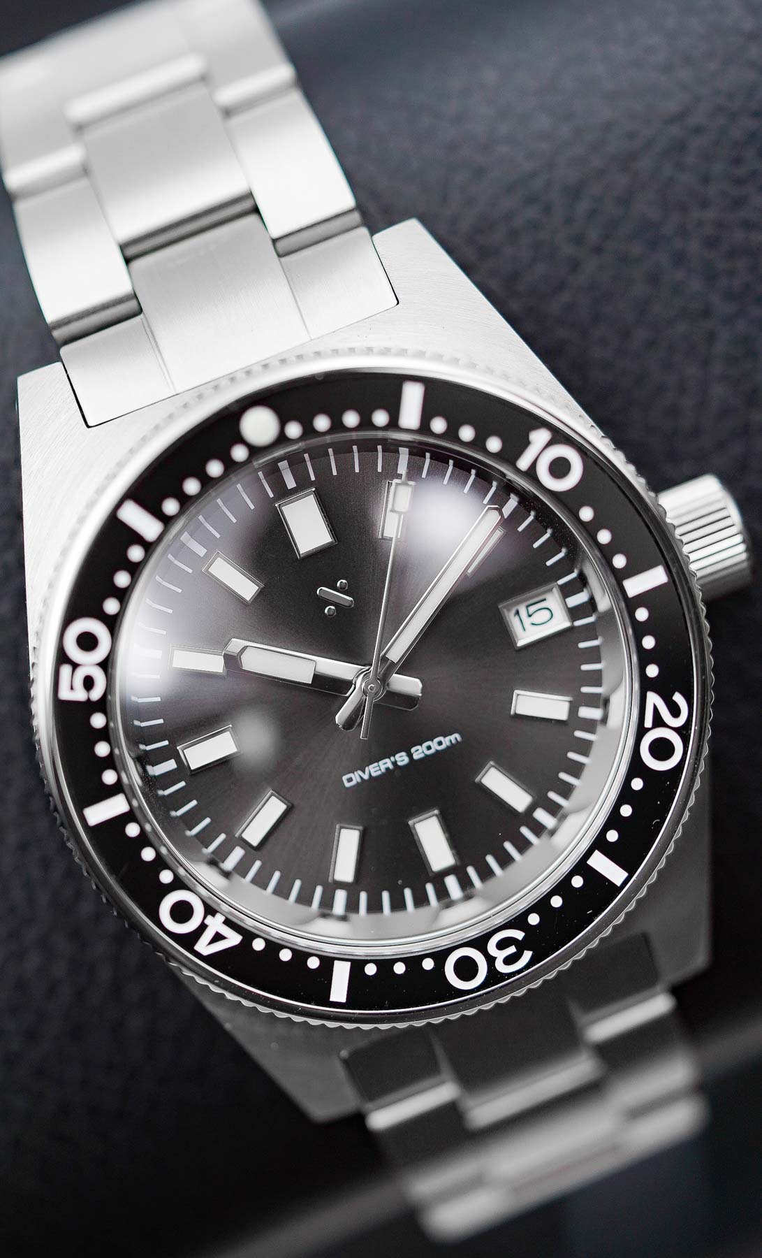 The solid screw-down caseback is kept sterile. The drilled lugs make strap changes quick and easy, particularly for beginners. At 3 o’clock is a large, unsigned screw-down crown with a polished finish. While the crown feels somewhat inexpensive, it functions reliably and is easy to grip due to its size. Protecting the dial is a double-domed sapphire crystal with anti-reflective coating, enhancing legibility and scratch resistance. One point of confusion lies in the water resistance rating: the website states 100 meters (10 ATM), while the dial claims 200 meters (20 ATM). Based on the construction, 200 meters seems plausible, but for clarity and honesty, the lower figure is likely more accurate — and it would be best if the dial reflected that to avoid misleading consumers. The case is well-built and impressively finished for a watch priced at $315. The proportions, particularly the long lug-to-lug distance, make the watch wear larger than expected. If the lugs were shorter, it would offer a more versatile fit across a wider range of wrist sizes.