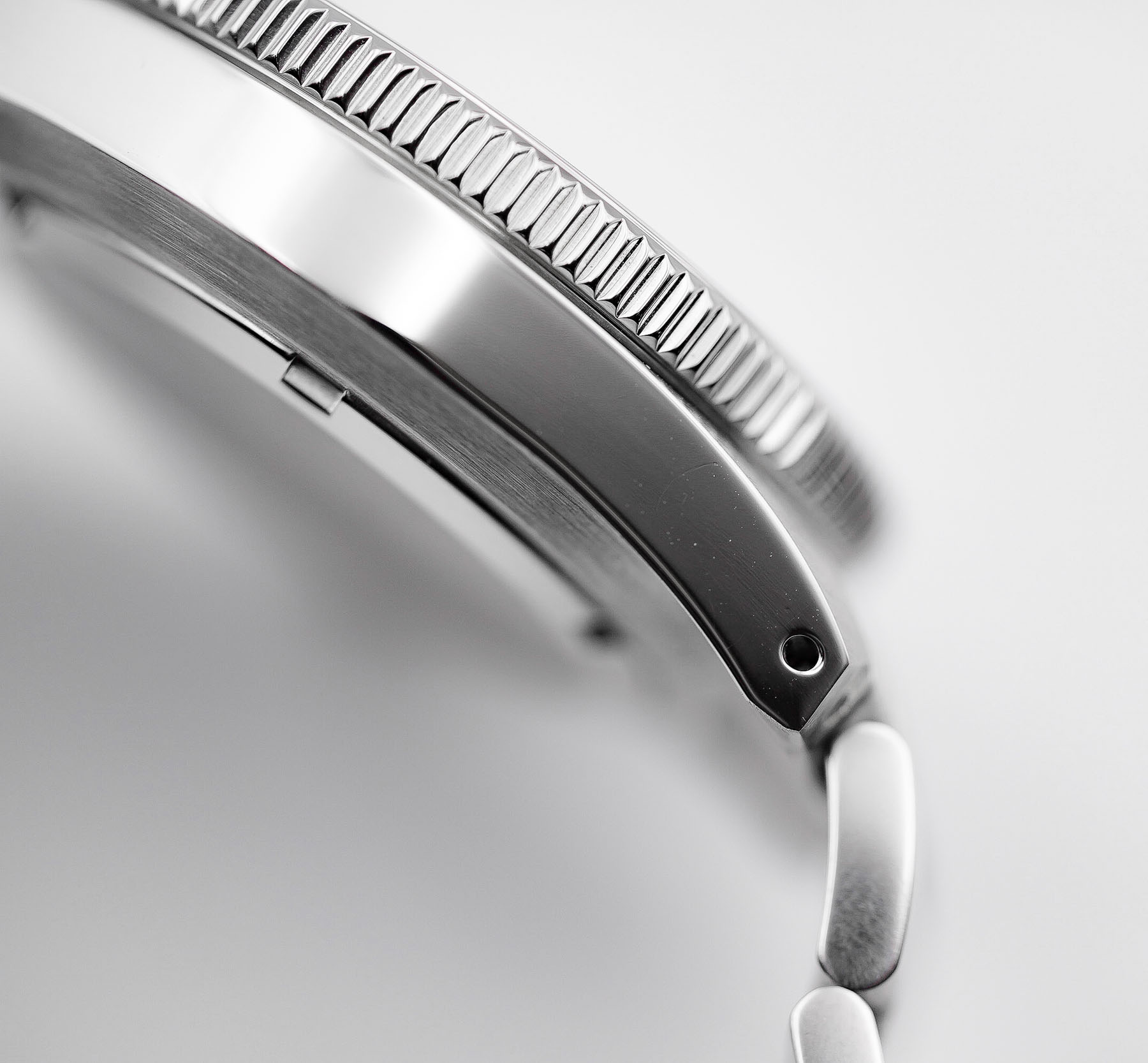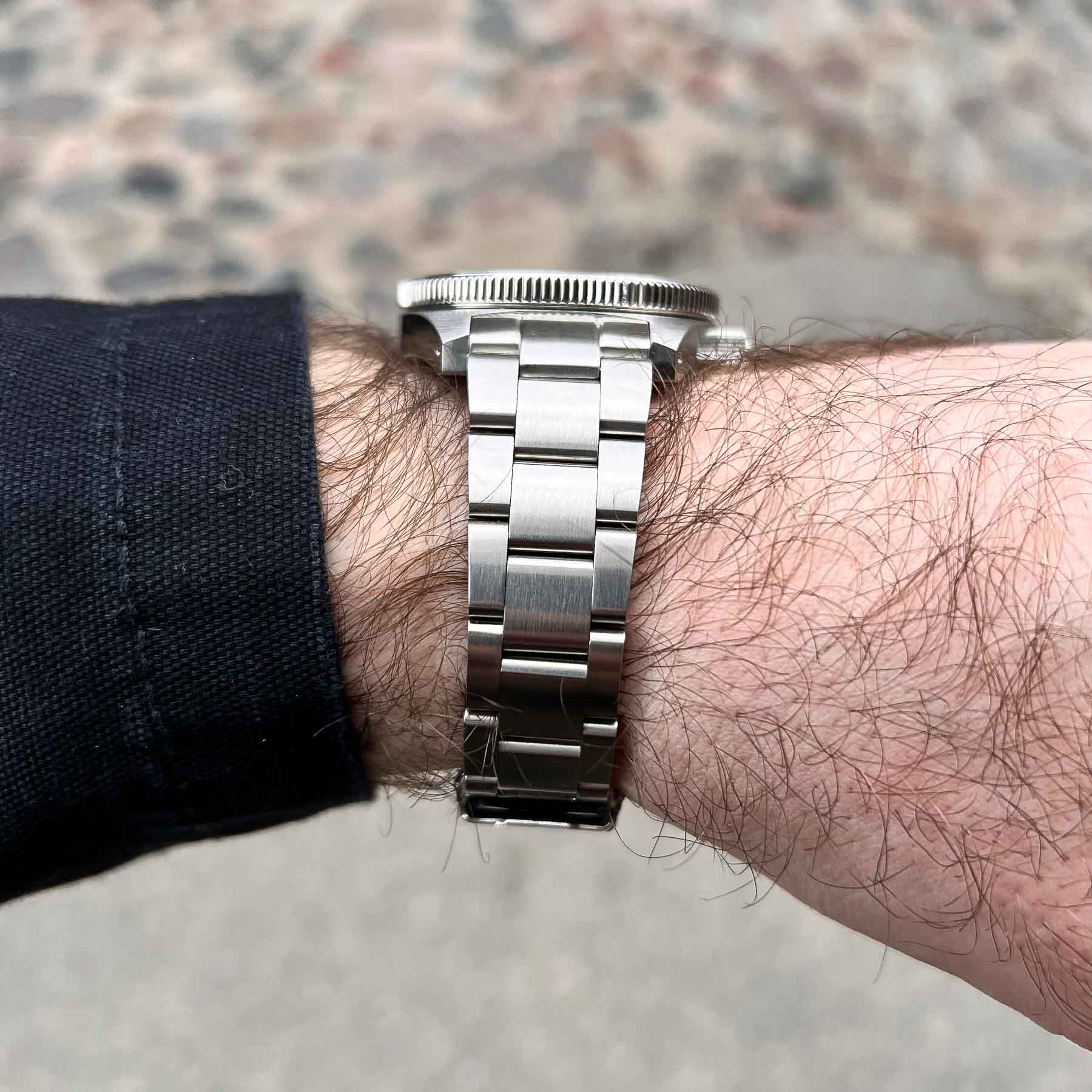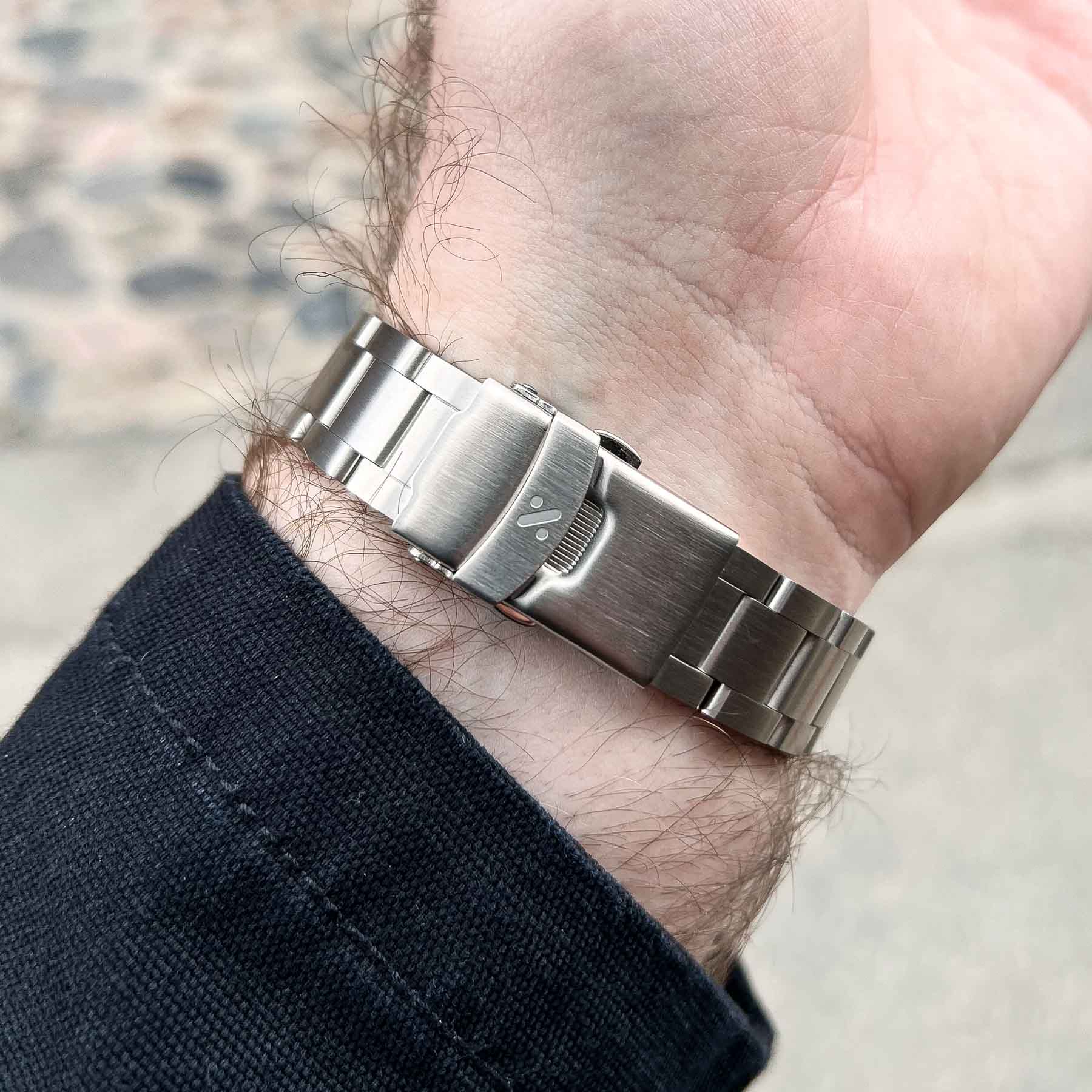 The bracelet is crafted from 316L stainless steel and styled in the classic Oyster configuration, offering a versatile and timeless look. It features a satin-brushed finish on the top surfaces with polished sides, providing a subtle yet refined contrast that complements the watch case well. Solid end links give the bracelet a secure, integrated feel, while the use of screws instead of push pins for sizing adjustments is a welcome touch, especially for those who prefer easier link removal. Adjustment was straightforward, and I highly recommend applying blue Loctite to the screws to ensure it will be secure.
