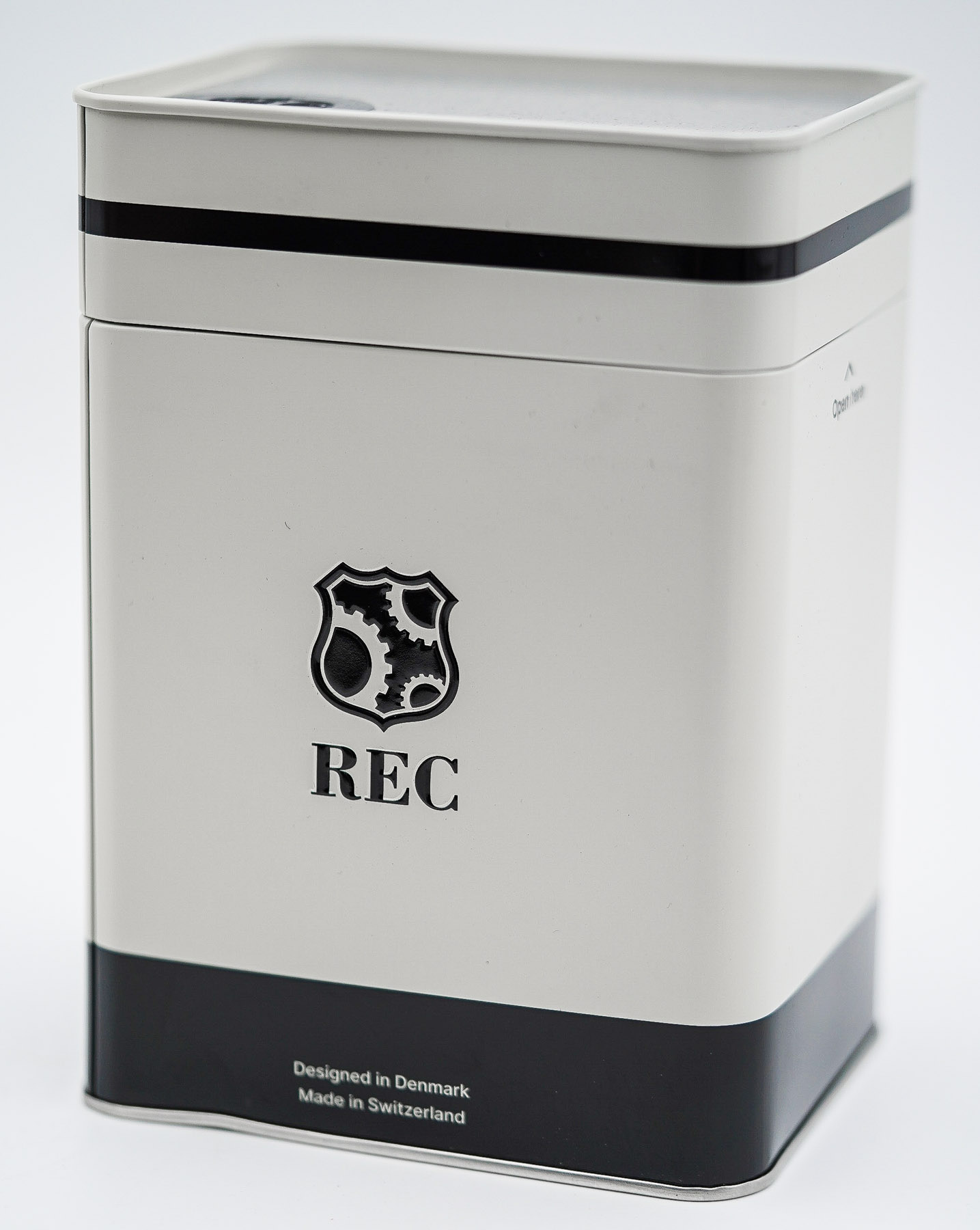 The unboxing experience of the TTT Knievel is a bit of a journey—and one that leans into REC’s flair for storytelling. It begins with a black textile bag bearing the brand’s logo, then opens to reveal a metal tin. Inside that is a black cardboard box, and within that, finally, the travel case that contains the watch. It’s a nesting-doll experience clearly designed to build excitement, and it succeeds in delivering that collector’s moment of anticipation. Accompanying the watch are a certificate of authenticity, a cleaning cloth, a printed warranty card, and a sturdy metal card engraved with a QR code that links to the user manual. All of these details give a sense of quality and intentionality—every piece has its place, and nothing feels like an afterthought.