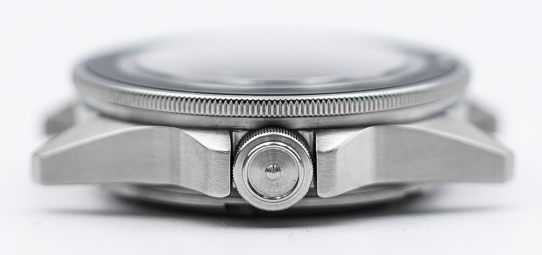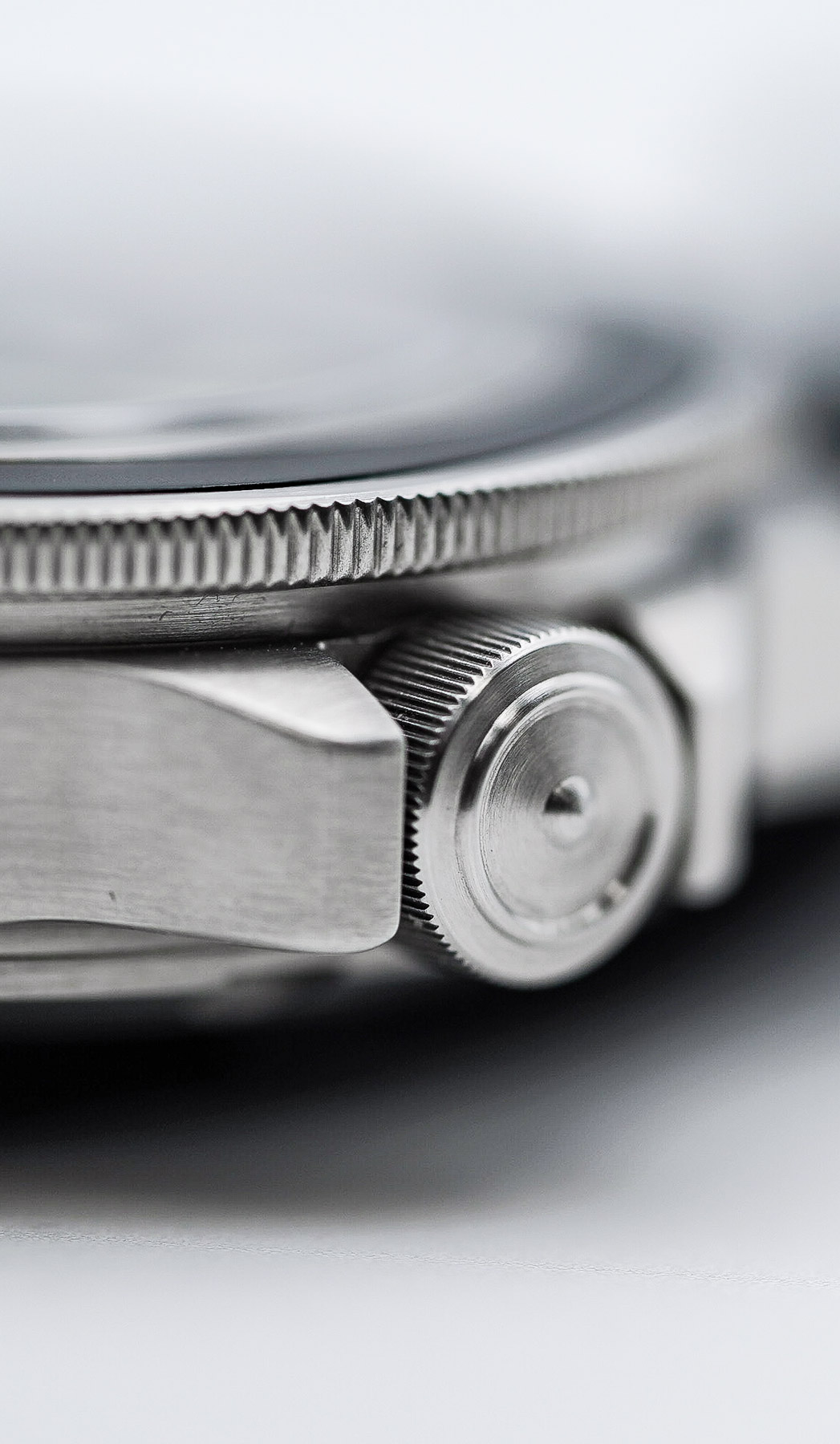 The unidirectional bezel features a coin-edge design and a matte black aluminum insert. It’s a 120-click unit, offering firm, deliberate action. There’s a lume pip at the 12 o’clock position, but otherwise the insert is bare, with the dive timing minute track located instead on the dial perimeter. This design choice is polarizing: it’s cleaner and arguably more elegant, but it sacrifices some of the functional intuitiveness found in traditional dive bezels. The crown at 3 o’clock is a screw-down unit adorned with Unimatic’s bullseye motif. It threads smoothly and has a substantial, tactile feel. The case’s water resistance rating of 300 meters is both technically impressive and practical, matching or exceeding many offerings in the tool-watch arena. Completing the profile is a double domed sapphire crystal, treated with anti-reflective coating on the underside. It slightly bubbles above the bezel, evoking vintage dive watches, while keeping reflections to a minimum. Overall, the case of the U1 Classic – UC1 strikes a compelling balance between robust utility and streamlined proportions. It’s ready for field work, urban commutes, or desk diving—whatever your mission may be.