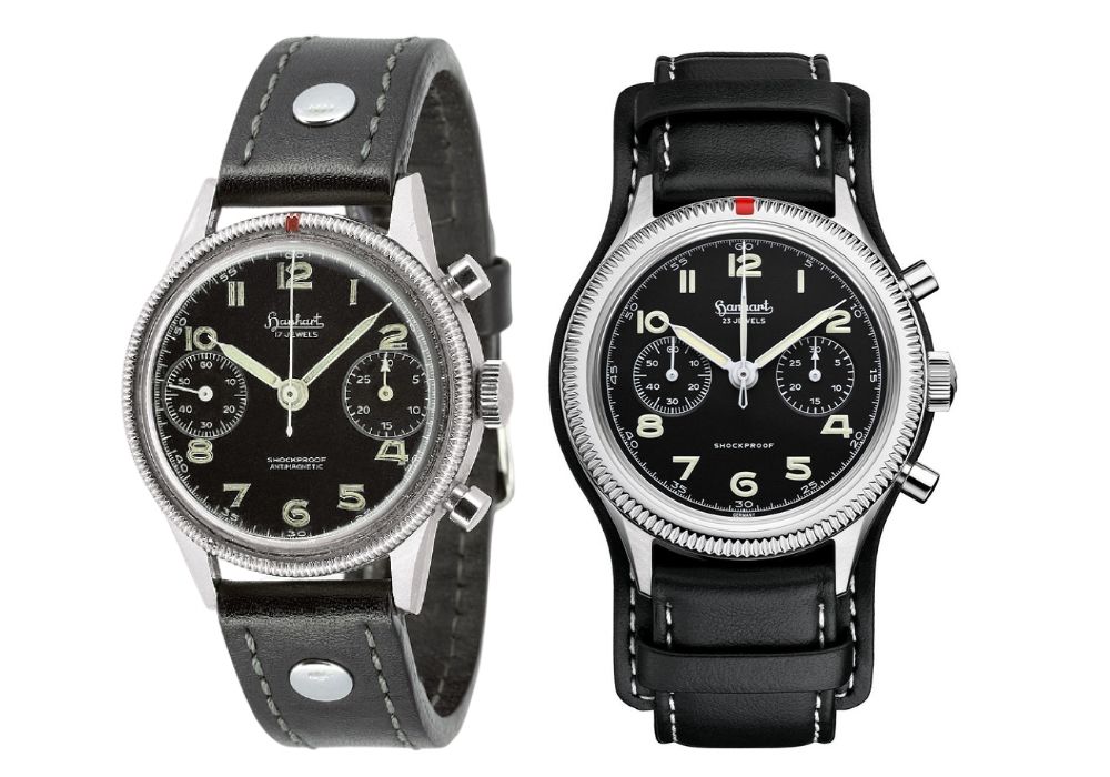 As tensions in Europe escalated toward World War II, the German Luftwaffe commissioned Hanhart chronographs for its pilots. These watches were robust, legible, and reliable in the harsh conditions of flight. Most notably, they included a red-painted pusher — now an iconic Hanhart design detail. While originally introduced to prevent accidental resets during flight, the red pusher has since become a signature aesthetic element of the brand. These wartime chronographs were manufactured under strict standards, and some featured flyback functionality, allowing pilots to reset the chronograph without stopping it — crucial for aerial navigation.