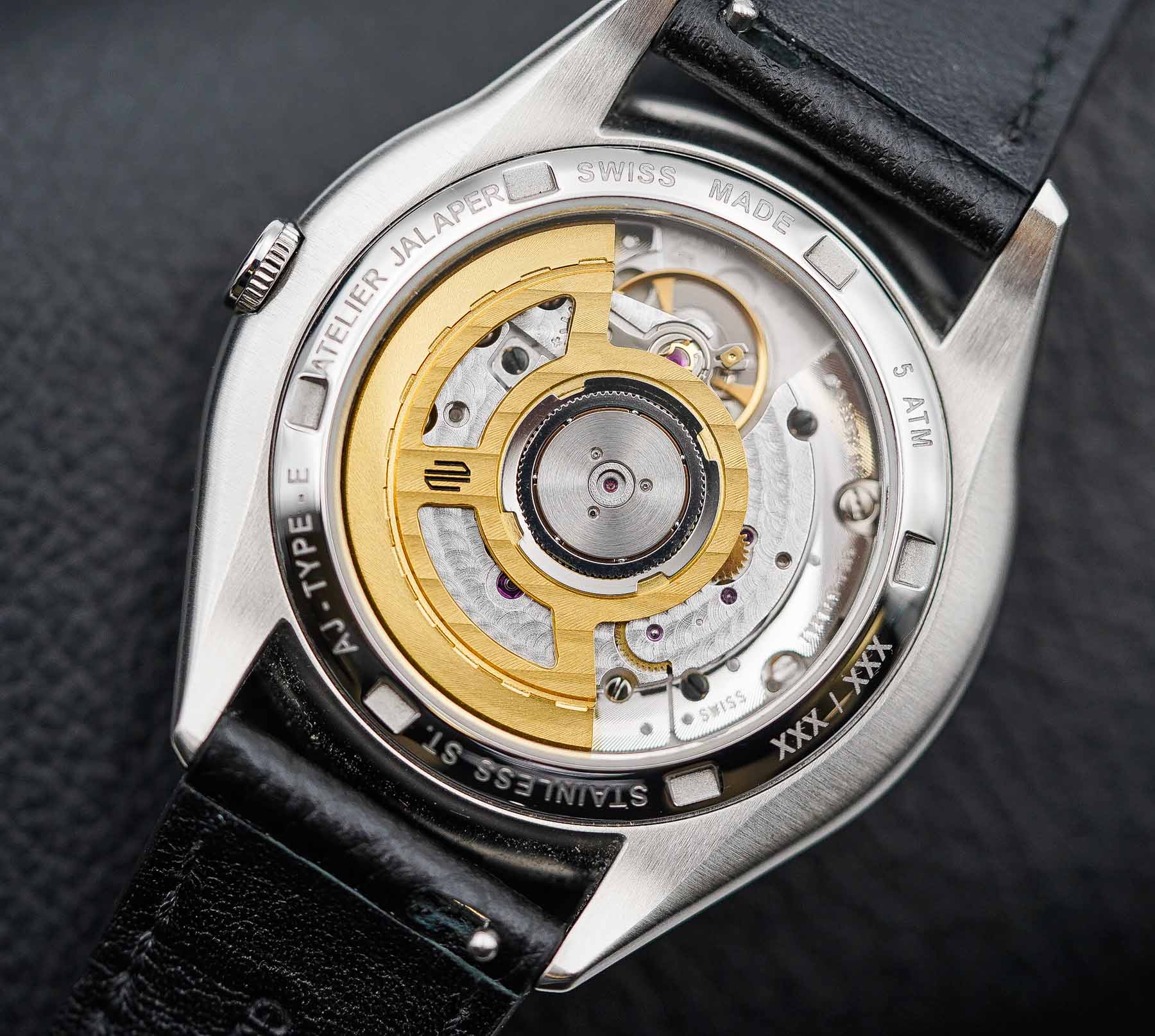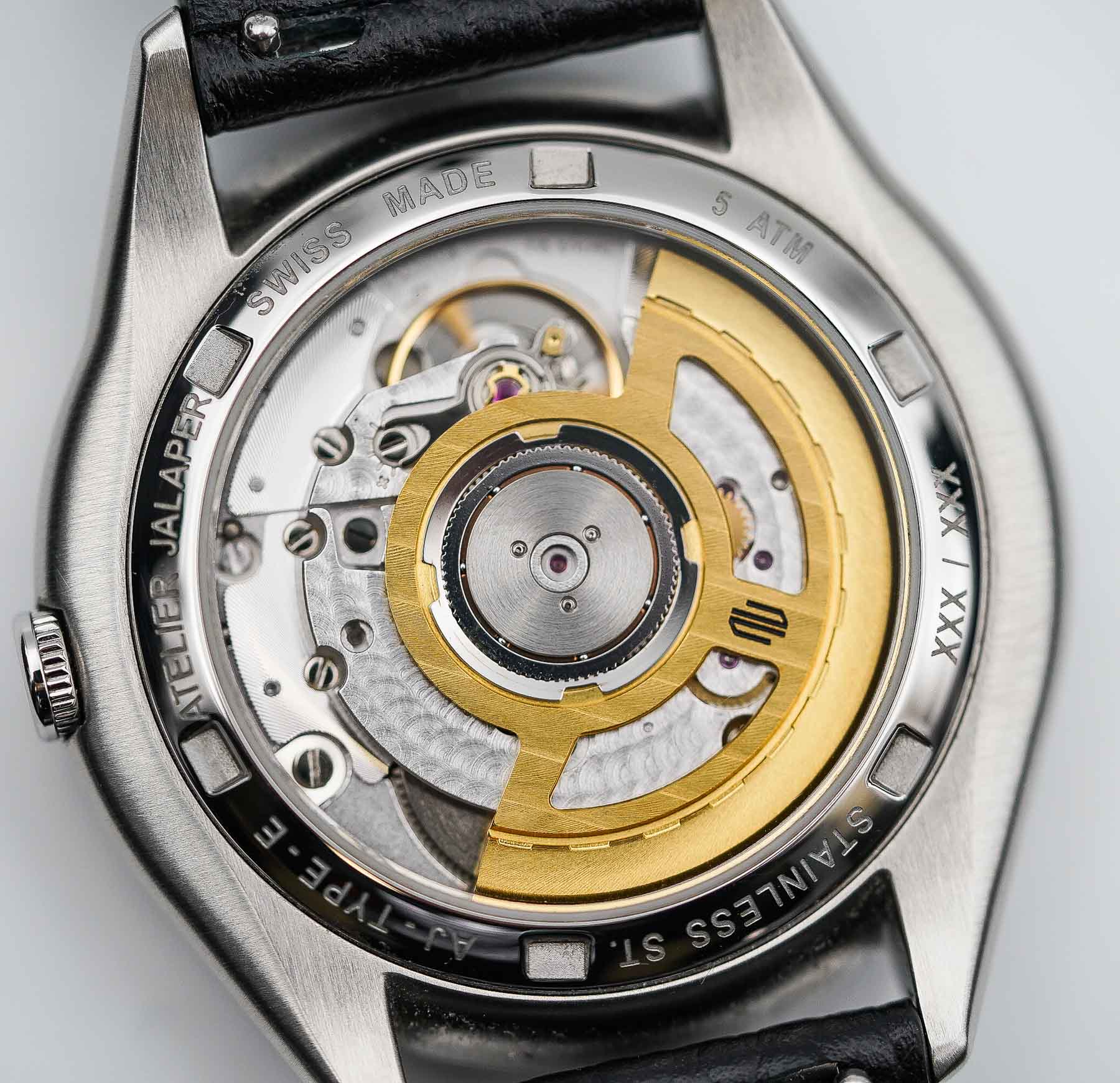 Powering the AJ-003 is the Sellita SW300-1 b, a Swiss automatic movement known for its reliability, slim profile, and ease of service. But Atelier Jalaper takes it a step further: the movement is COSC-certified, meaning it meets chronometer-grade accuracy standards of −4/+6 seconds per day. This is no small feat for a microbrand and ind Flip the watch over, and the sapphire exhibition caseback reveals the movement’s decoration: perlage on the plates, and a custom gold-toned skeleton rotor with Côtes de Genève striping and the Atelier Jalaper logo. The finishing is attractive and appropriate for the price, balancing industrial robustness with refined touches. While not an in-house movement, the COSC-certified Sellita offers both performance and serviceability—two features that any collector, regardless of their interest in motorsport, can appreciate.
