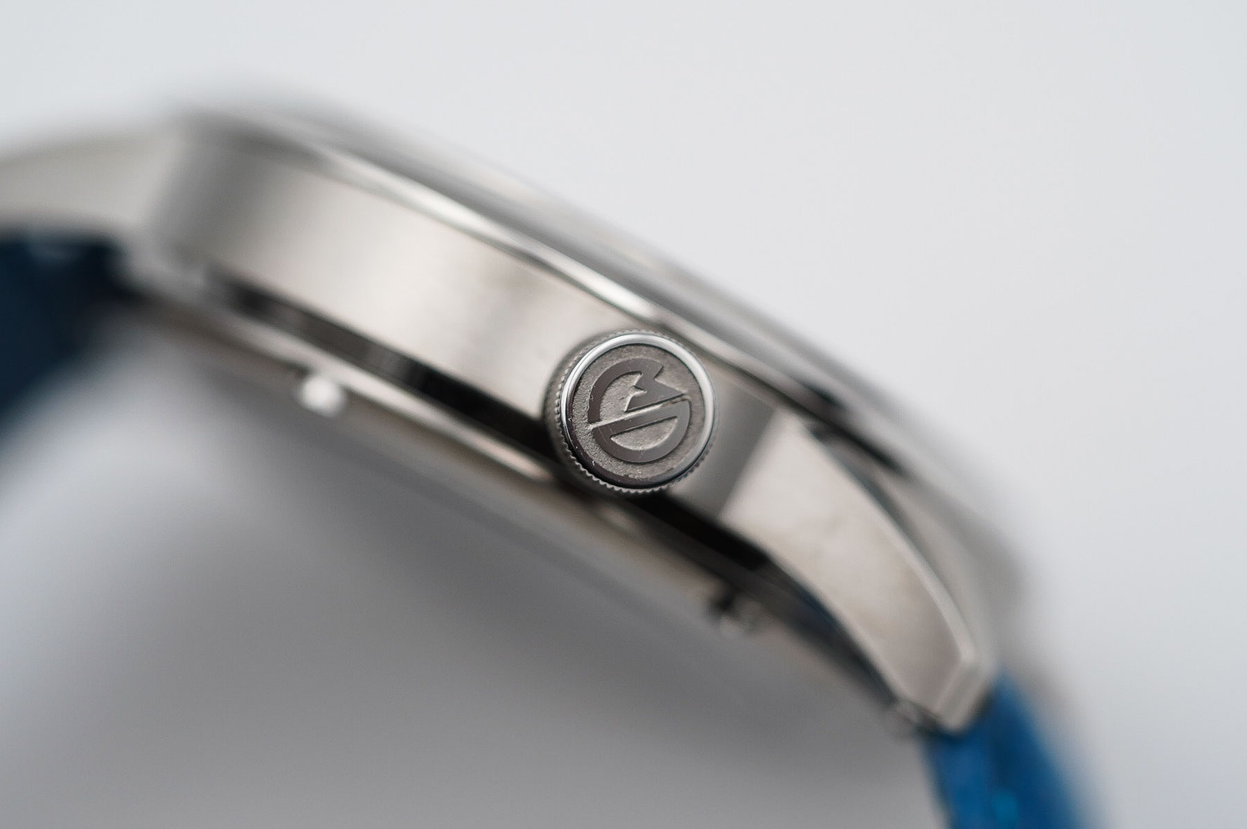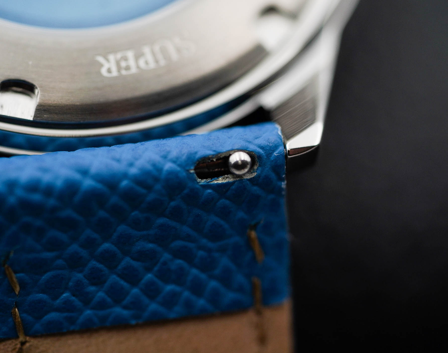 When purchasing the Supernatural Taranis, you’re offered a choice of seven different straps and bracelets: dark grey fabric strap, bright blue fabric strap, dark blue leather strap, black leather strap, mesh bracelet, solid-link stainless steel bracelet, and a bright blue leather strap. I didn’t specify my preference when placing the order—but I have to say, Mr. Iglódy absolutely nailed it by pairing the bright blue leather strap with the salmon pink dial. In my opinion, it’s the best possible combo—it really makes the dial pop while giving the watch a stylish, modern edge.