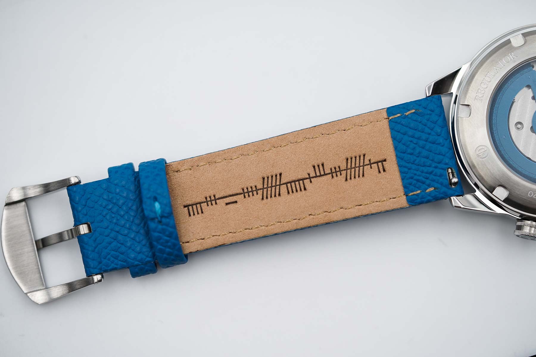 The strap itself is crafted from soft blue leather, with a beige suede-like lining on the underside that feels great against the skin. It’s padded for comfort and features matching blue stitching for a clean, cohesive look. Additional details like the MD logo and Celtic tree alphabet embossing add a thoughtful touch of personality. It tapers nicely from 20mm at the lugs to 18mm at the signed stainless steel buckle, giving it a refined silhouette. Quick-release spring bars are included—now fairly standard, but still appreciated—especially considering how uncommon they were when I first got into watches. On the wrist, the Taranis feels very comfortable and proves to be a great daily wearer. While the leather strap is initially a bit stiff, it begins to break in after just a couple of days, becoming noticeably more supple and comfortable with wear. As for the mesh bracelet, there’s not much I can say—I’m just not a fan. Like many mesh options, it tends to pull hairs, which is a dealbreaker for me. It appears to be a standard, no-frills mesh bracelet, included for those who like the style, but it’s not for me.
