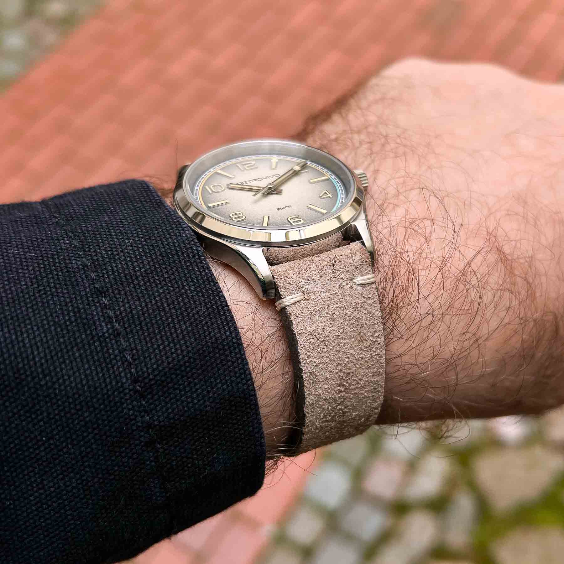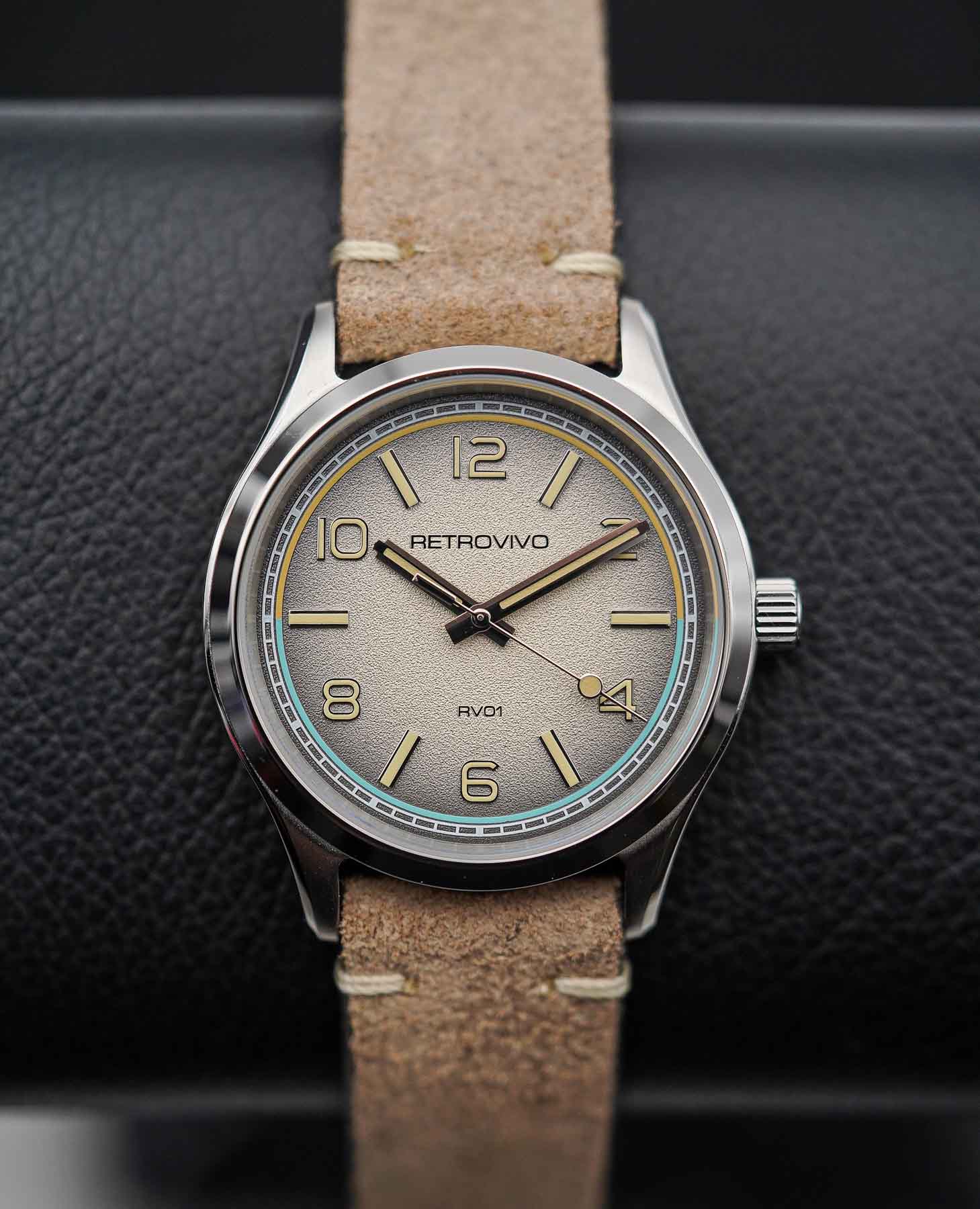 No watch is complete without a great strap, and the RV01 absolutely delivers in this department. Italian leather is synonymous with quality, and the straps included with the RV01 reflect that heritage. Each strap features a tapered silhouette with minimal stitching and a soft, weathered suede finish that gives the watch a lived-in, almost heirloom quality right out of the box. It’s one of those straps that instantly feels broken-in—comfortable from day one. Comfort is enhanced by the slimness and pliability of the leather. You won’t need to spend weeks softening it or waiting for it to mold to your wrist. The strap wears like an old favorite from the start, reinforcing the RV01’s retro-inspired aesthetic. Paired with quick-release spring bars, it’s easy to swap out for another style, making it incredibly user-friendly for enthusiasts who like to rotate straps regularly. The included NATO strap is another welcome touch. While it’s more casual than the leather option, it transforms the RV01 into a sportier piece that’s ideal for travel, the outdoors, or warmer weather. NATO straps are known for their comfort and durability, and Retrovivo’s version feels like it will hold up well under daily wear.