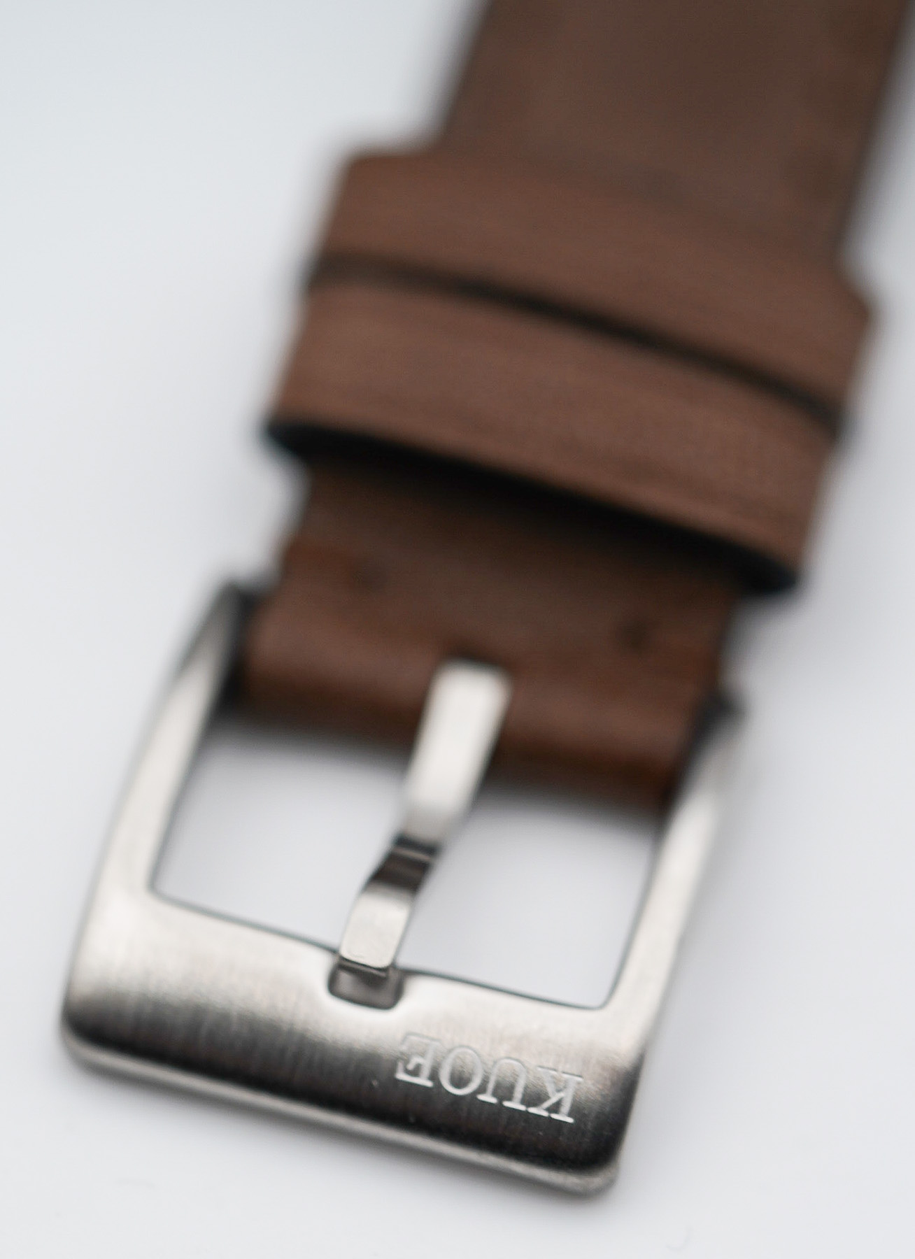 The watch arrived in a simple cardboard outer box, but inside was a genuine surprise: a beautifully made brown leather travel case that housed the timepiece itself. Alongside the watch, Kuoe included a warranty card, instruction manual, a screwdriver for bracelet adjustment, and an additional leather strap. It’s clear Kuoe has put real thought into presentation. I particularly appreciate this style of packaging—functional rather than wasteful. The outer cardboard can be discarded, while the leather travel case remains a practical accessory, perfect for safe storage at home or for carrying the watch on trips. As for first impressions, they were overwhelmingly positive. The 38 mm case size felt just right, and the finishing quality was immediately apparent. The only surprise was the thickness: despite the modest diameter, the watch sits higher on the wrist than expected, giving it a more substantial presence.