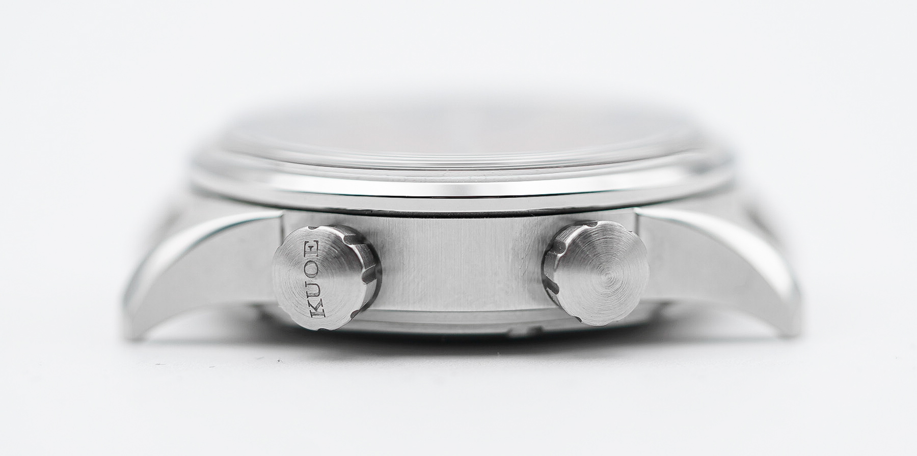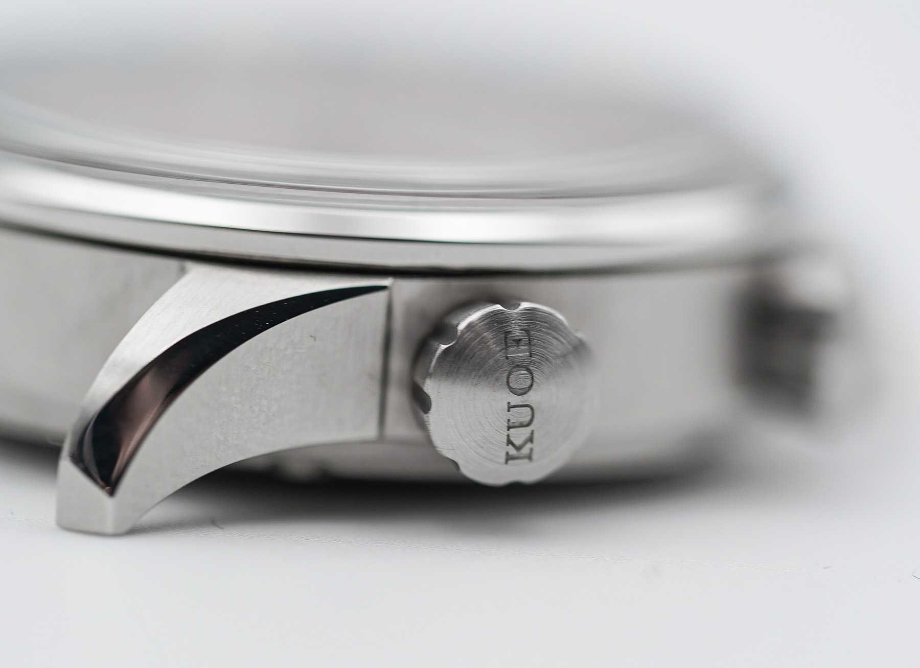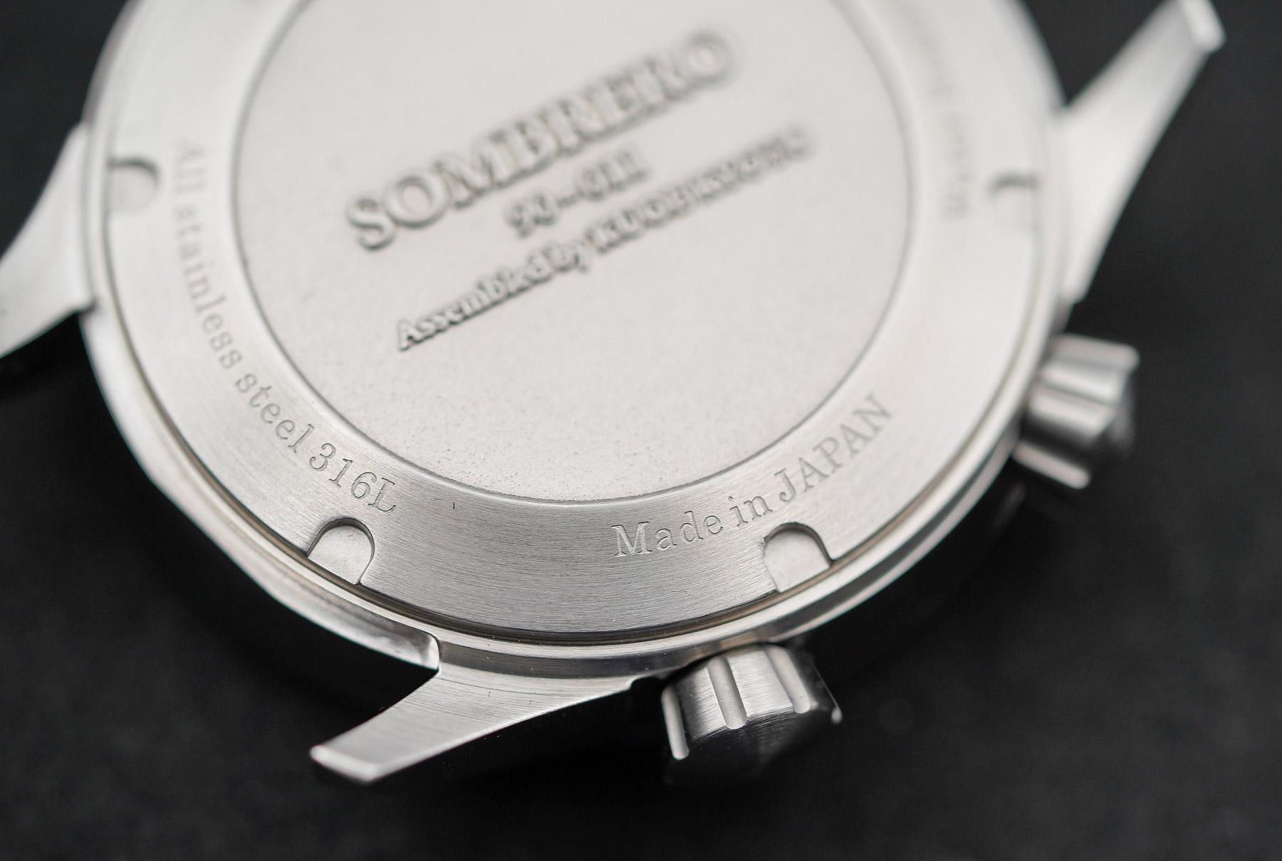 The dimensions are as follows: 38 mm wide, 45.5 mm lug-to-lug, and 12.4 mm thick including the box sapphire. Lug width is 20 mm, which makes strap-swapping easy. On the wrist, it hugs nicely thanks to those short, downturned lugs. While the diameter and lug-to-lug length are very well considered, the thickness feels less refined. Ideally, the case could have been slimmer, but this is likely dictated by the dimensions of the movement itself. The finishing is where you can tell Kuoe is not phoning it in. The stainless steel case combines satin brushing on the lugs and vertical brushing on the flanks, offset with polished chamfers and bezel that catch the light at just the right angle. These transitions are sharp and confident. Turn the case over and you’re greeted by a screw-down caseback with embossed Sombrero text, specs, and a circular brushing that feels tactile and precise.