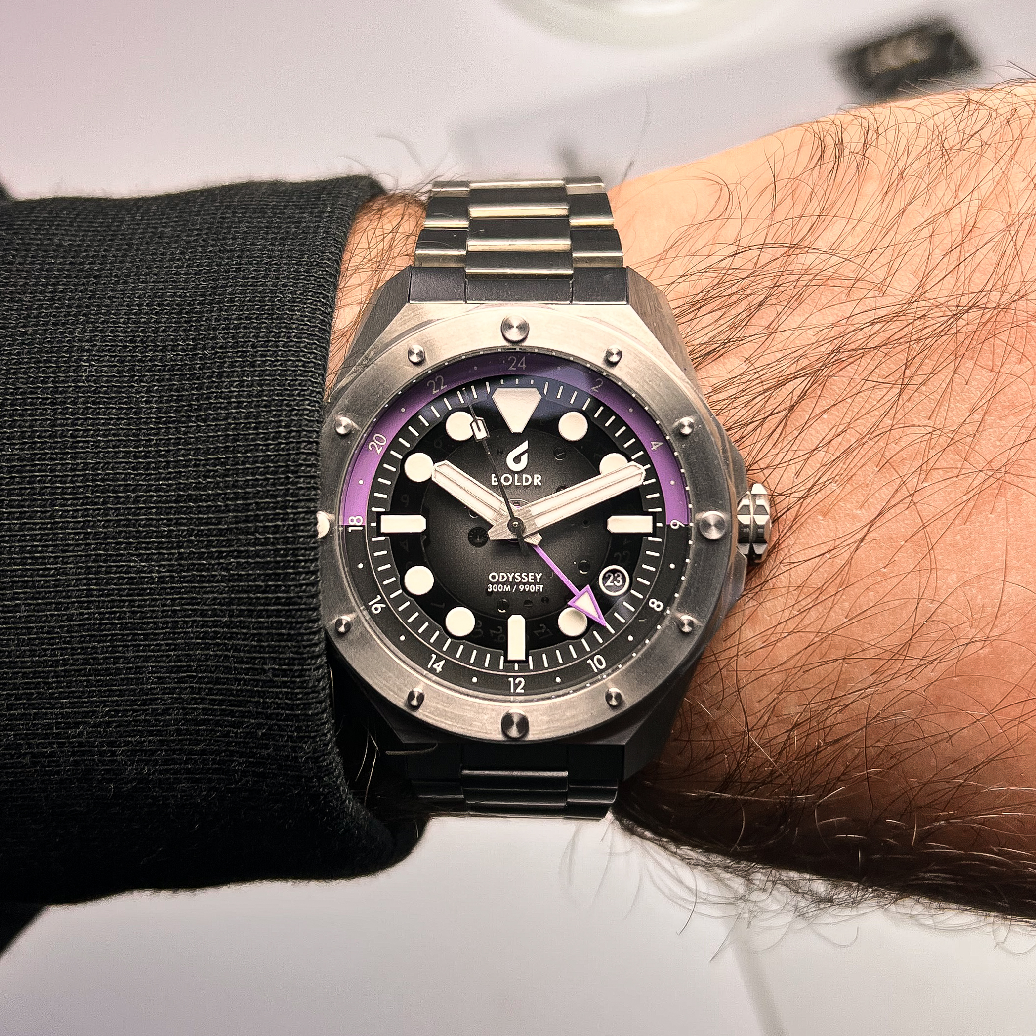 It’s easy to get cynical about modern tool watches. After decades of dive watch iterations, endless GMT re-hashes, and the occasional half-hearted attempt at originality, it sometimes feels like the industry is stuck in a loop. How many times can we see another “heritage-inspired” diver before the formula starts to feel tired? It’s not that these watches are bad—they’re often excellent in quality and execution—but they rarely surprise with their design. A new release usually leads to little more than a quick nod of approval before fading into the blur of the next announcement. The Boldr Odyssey Titanium, however, resists that blur. Instead of leaning into homage or restraint, it doubles down on the idea that a diver—or, more specifically, a traveler’s diver with GMT capabilities—can be audacious, experimental, and still fully functional. The Odyssey is not a watch you simply glance at and dismiss. It’s a watch you turn over in your hand, tilt in the light, and continuously rediscover.