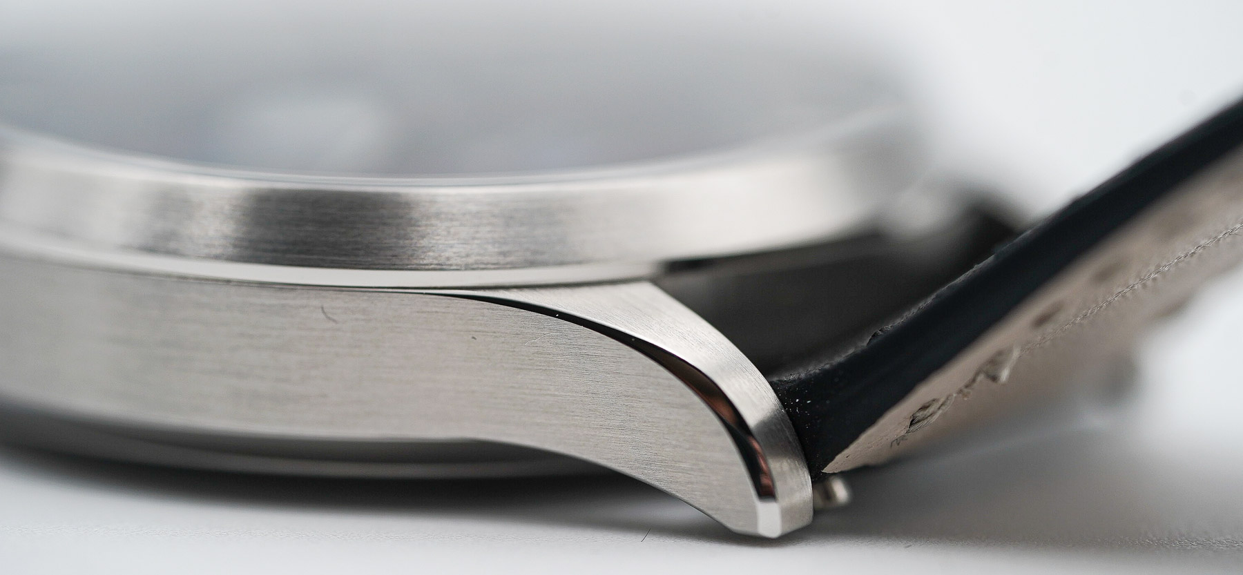The case of the Orion is crafted from 316L stainless steel, a tried-and-true material in modern watchmaking known for its corrosion resistance and durability. At first glance, the case architecture seems deliberately simple—no dramatic angles, no oversized guards, no experimental shapes. This restraint is intentional: it provides a timeless canvas for the dial, allowing the moonphase display to take center stage. Despite the straightforward silhouette, finishing is carefully considered. The majority of the surfaces are brushed, lending the watch a utilitarian matte character. This is punctuated by thin, polished bevels that trace along the lug edges and the rim of the bezel. These subtle highlights catch the light without dominating the watch, underscoring the geometry and breaking up what could otherwise feel austere.